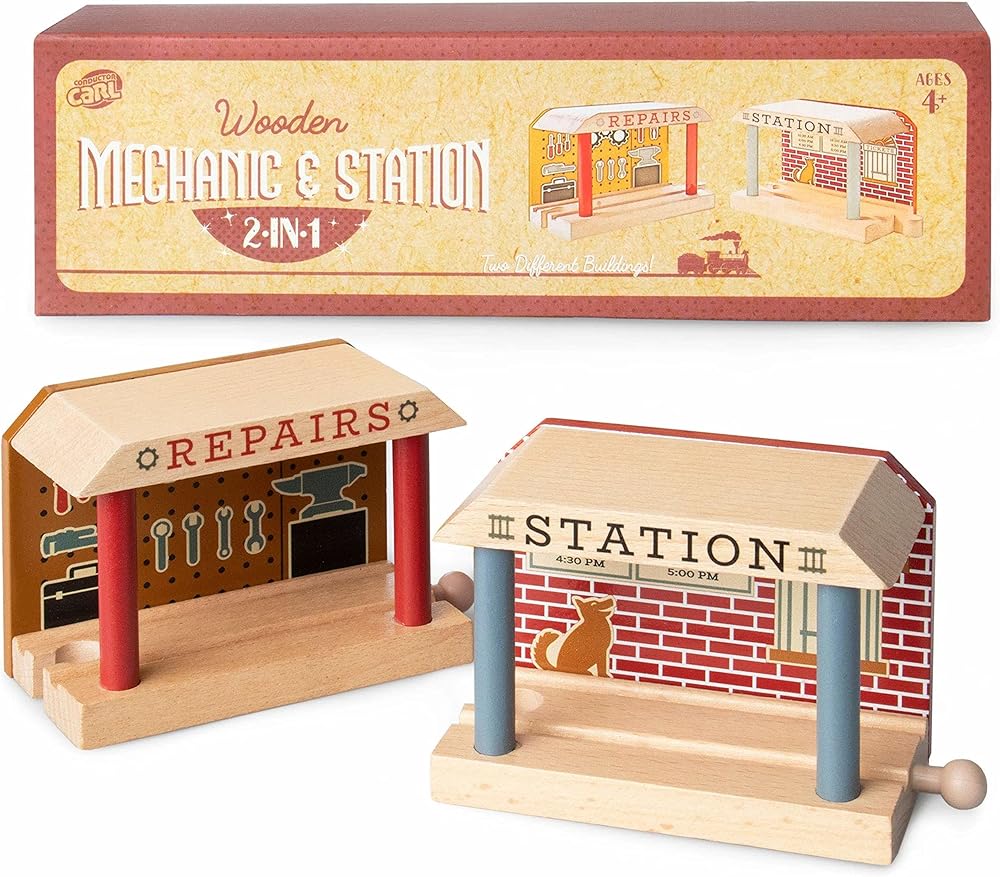 YOUR TWO-STOP SHOP: Need repairs? Do your train customers need to buy tickets to board your impressive train? This 2-in-1 mechanic station and train station has your imagination covered and will fit your existing track perfectly