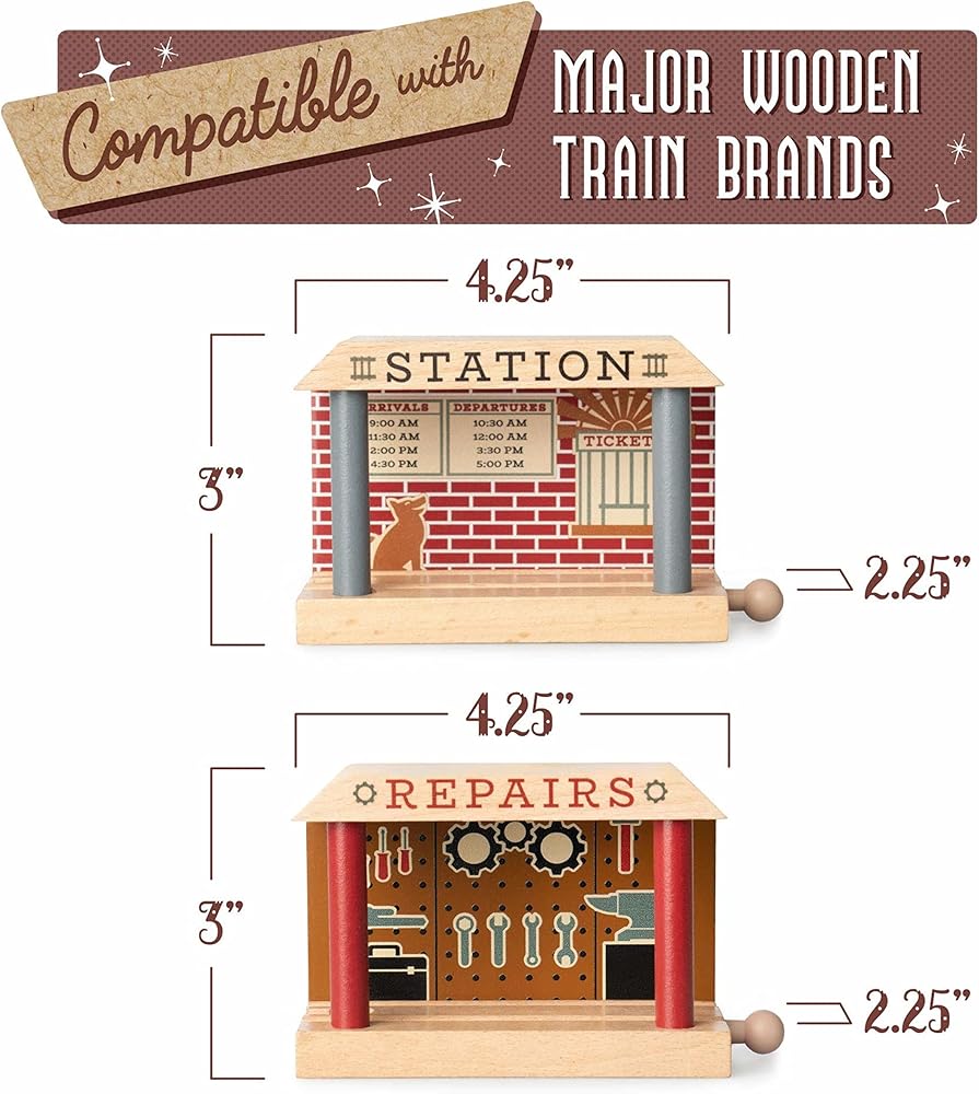 CENTERPIECE STURDY STATIONS: These two stations are sturdy additions to your train collection! No need to worry about small, breakable pieces with these strong buildings