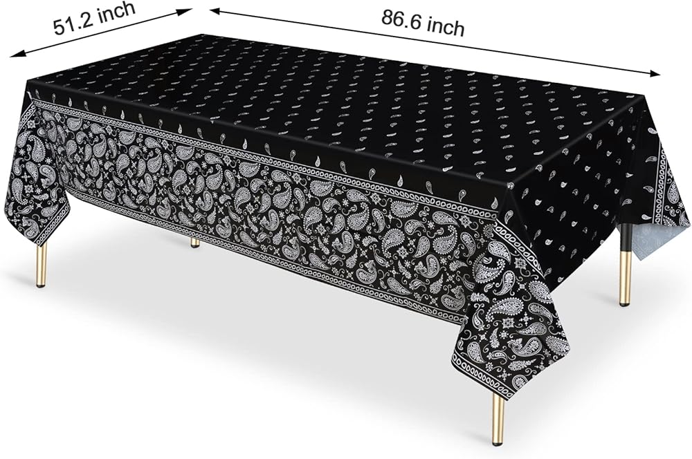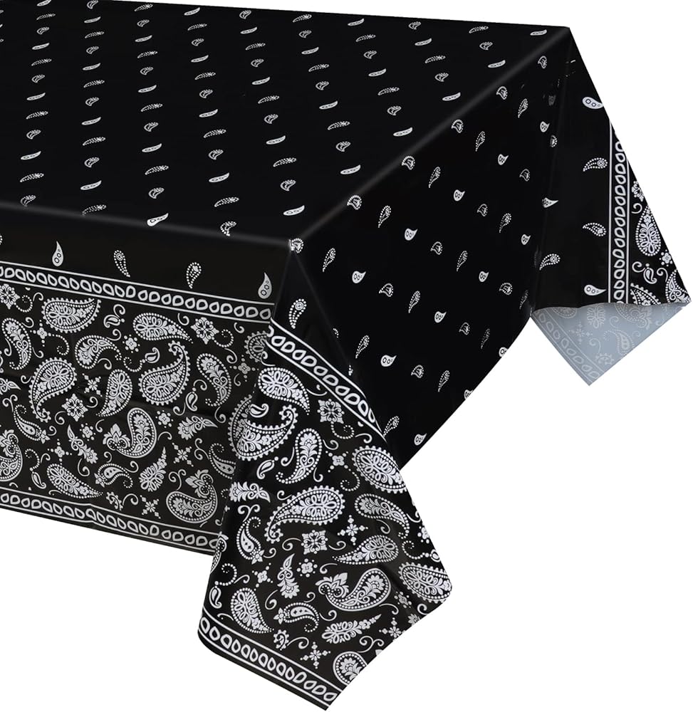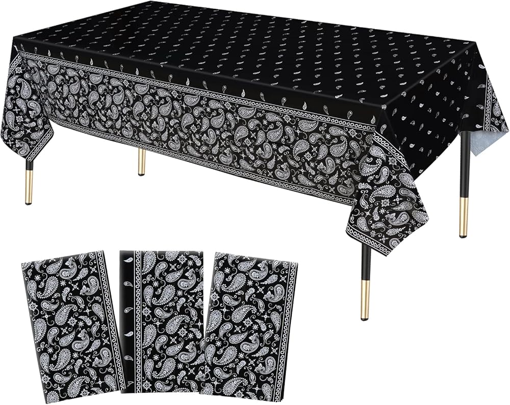 • محتويات العبوة: سوف تحصل على ثلاثة مفرش طاولة أسود للحفلات بتصميم باندانا من البلاستيك بتصميم ويسترن كاوبوير.