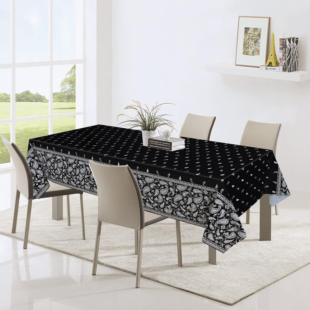 • المقاس المثالي: غطاء طاولة بلاستيكي أسود مقاس 87.9 × 51.0 بوصة، طريقة رائعة لمحاربة البقع والانسكابات وحلقات المشروبات.