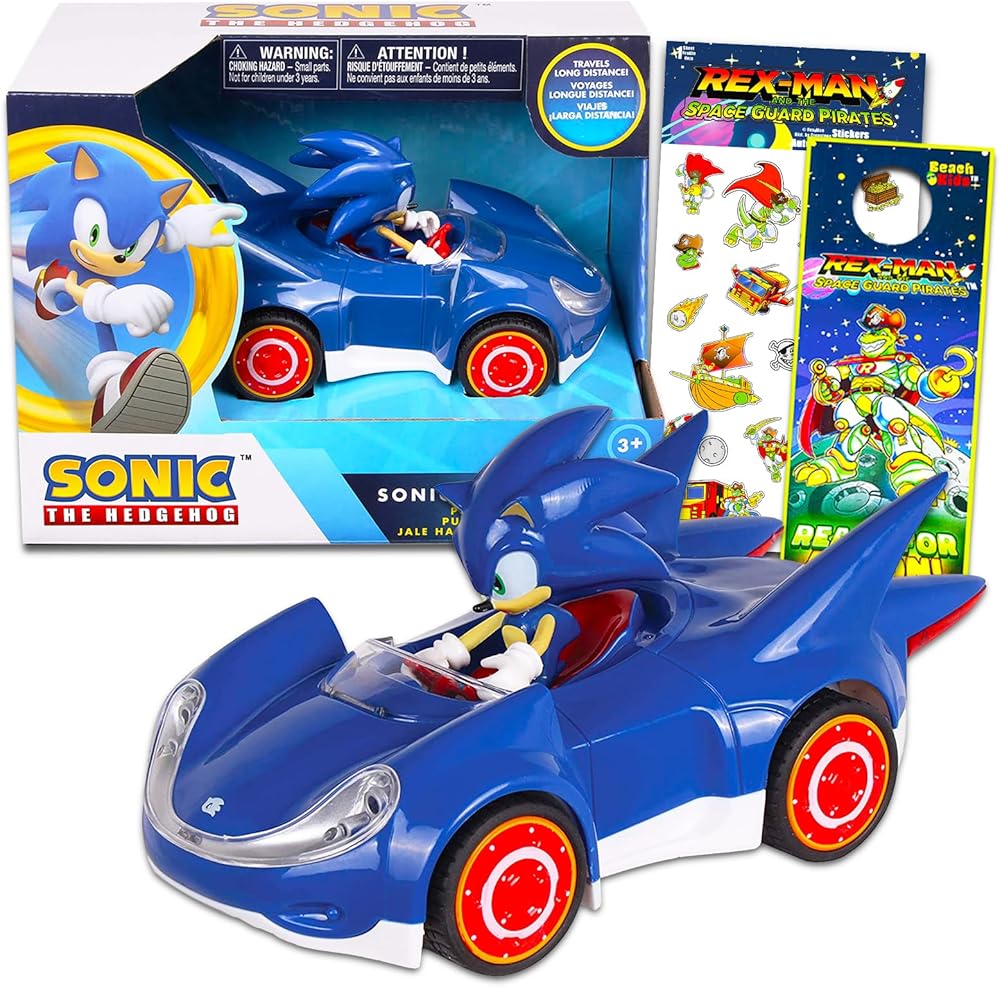 تتضمن مجموعة هدايا سونيك هذه لعبة سباق واحدة قابلة للسحب للخلف تتميز بالقنفذ سونيك جالس خلف عجلة القيادة، ويبلغ طولها حوالي 6.5 انش وطول 3.25 انش.