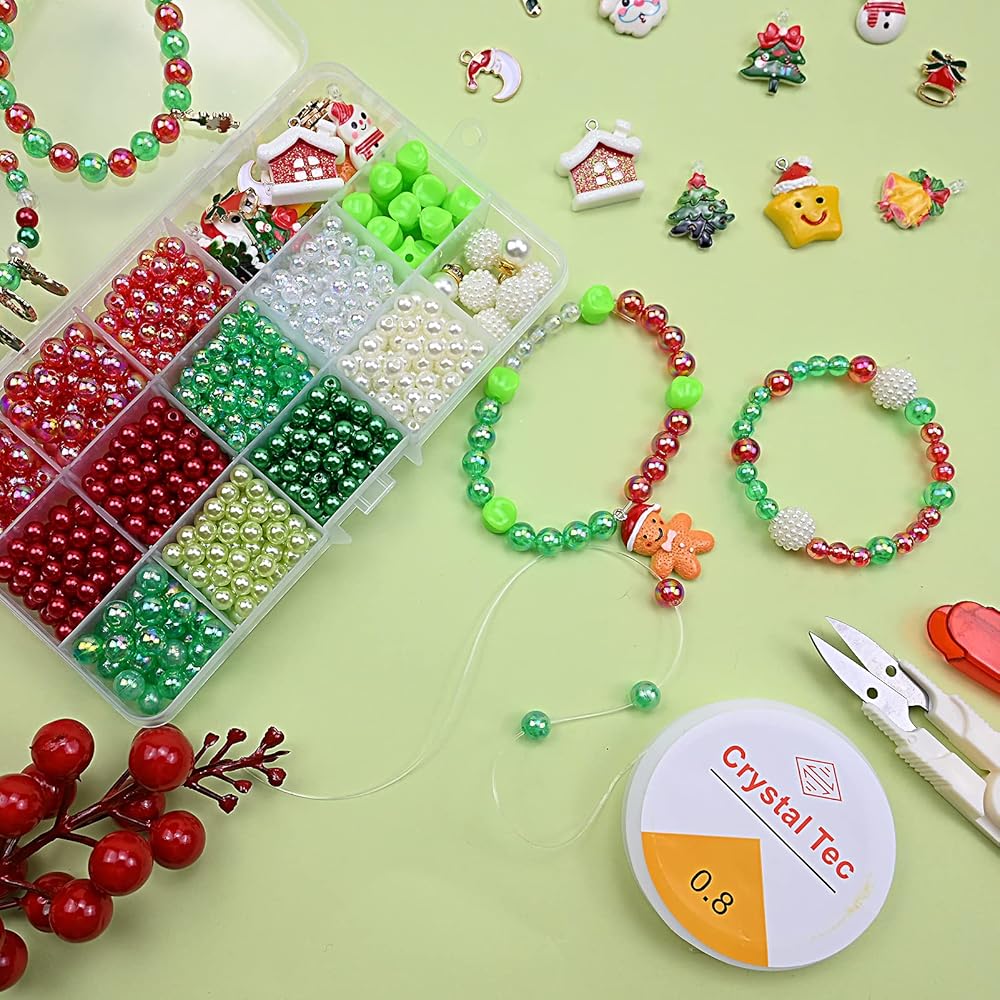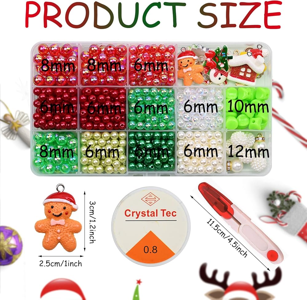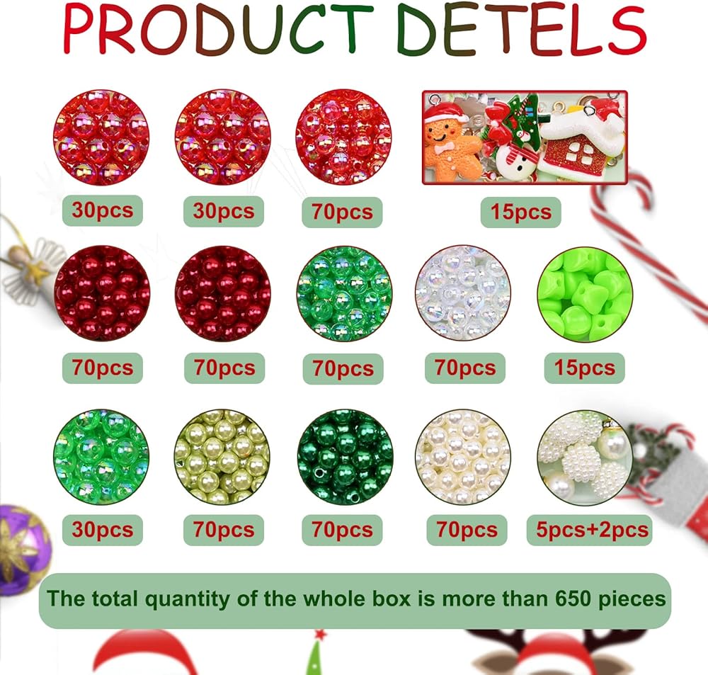 【كمية كافية】 - سوف تحصل على حوالي 650 قطعة خرز، 1 لفة من خيط الكريستال، 1 قطعة مقص. تحتوي هذه المجموعة على مجموعة متنوعة من السحر الرقيق، مثل سانتا كلوز، ورجل الثلج، والبطريق، وأشجار عيد الميلاد، وجوارب عيد الميلاد، والرنة، والجرس، إلخ.