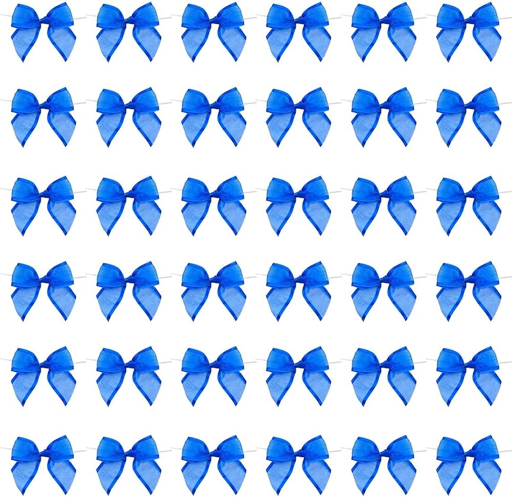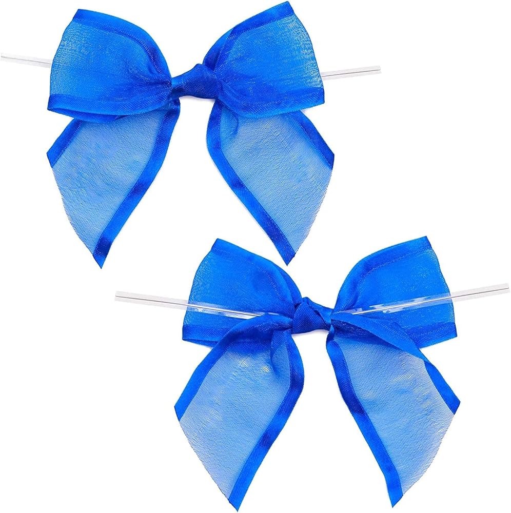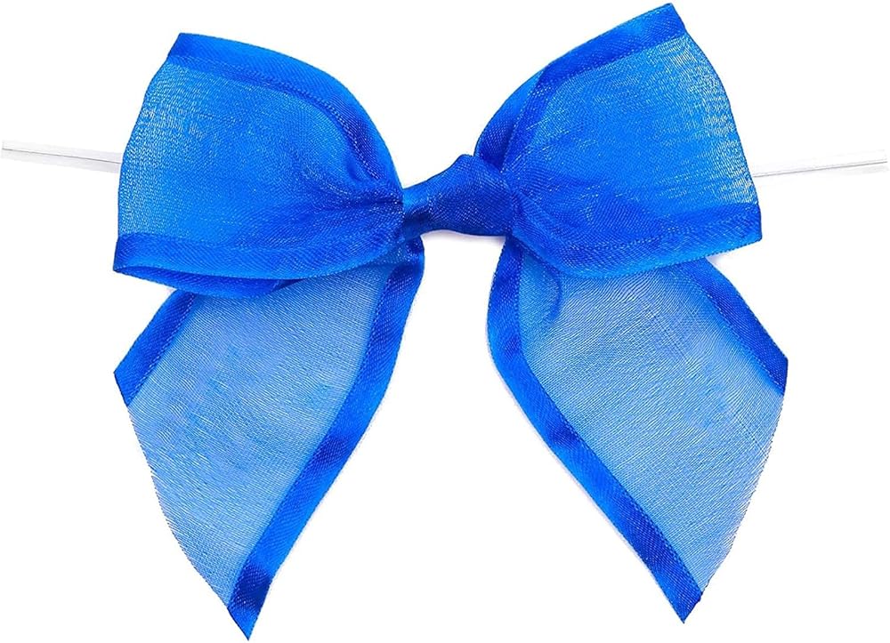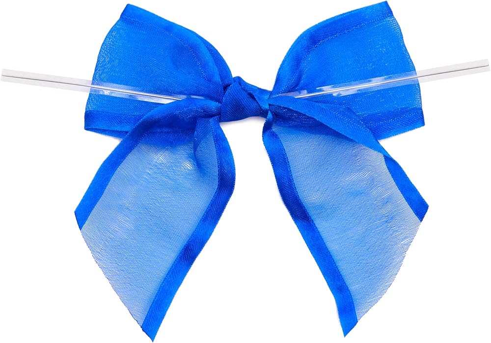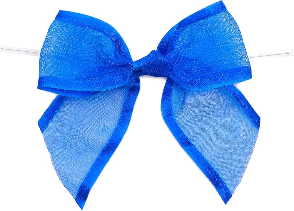 ربطات عنق ملفوفة على شكل فيونكة: هذه الربطات الصغيرة المصنوعة من الأورجانزا الزرقاء مثالية لتزيين حقائب الهدايا الصغيرة والعبوات