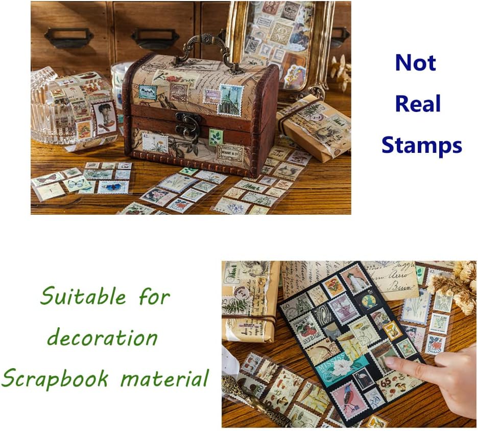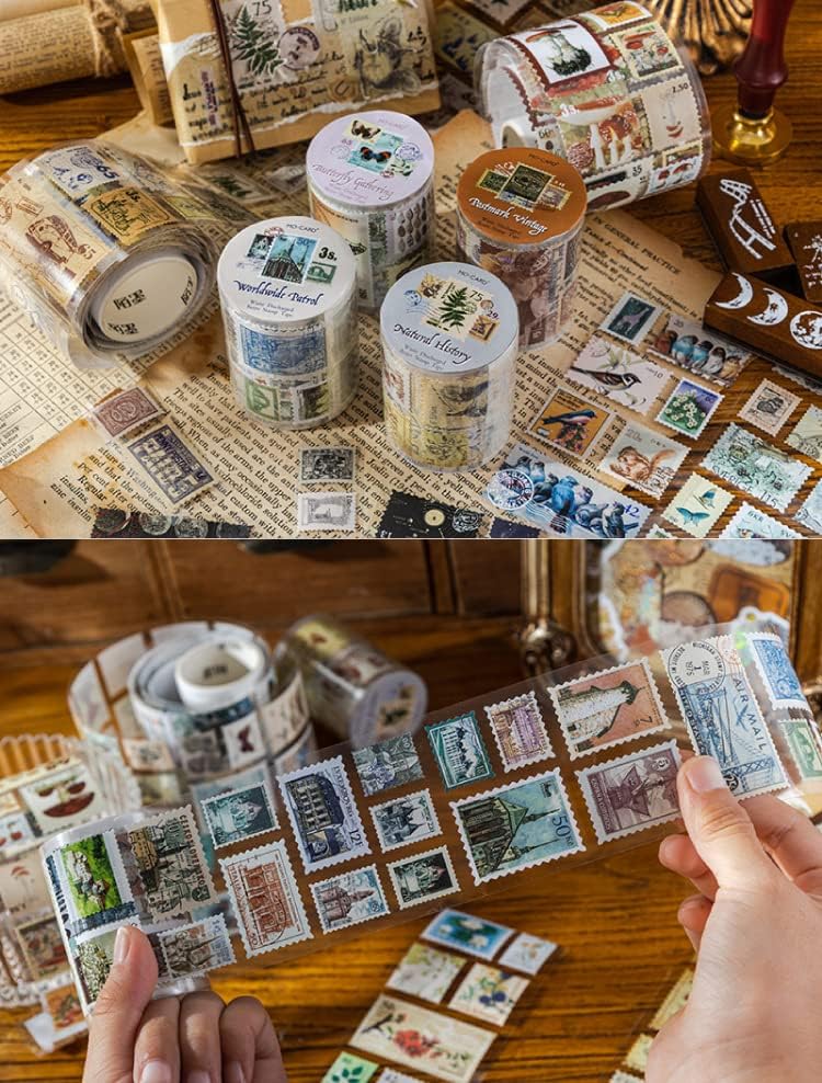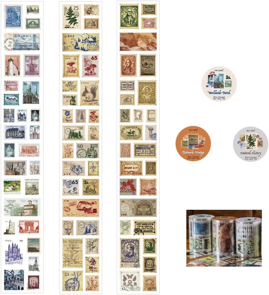 WZLL.SLSP مجموعة ملصقات طوابع بريدية عتيقة مكونة من 3 لفات، مناسبة لسجلات القصاصات، والحرف اليدوية، وإطارات الصور DIY، ومذكرات الرصاص، وديكورات اليوميات، ومستلزمات سجل القصاصات