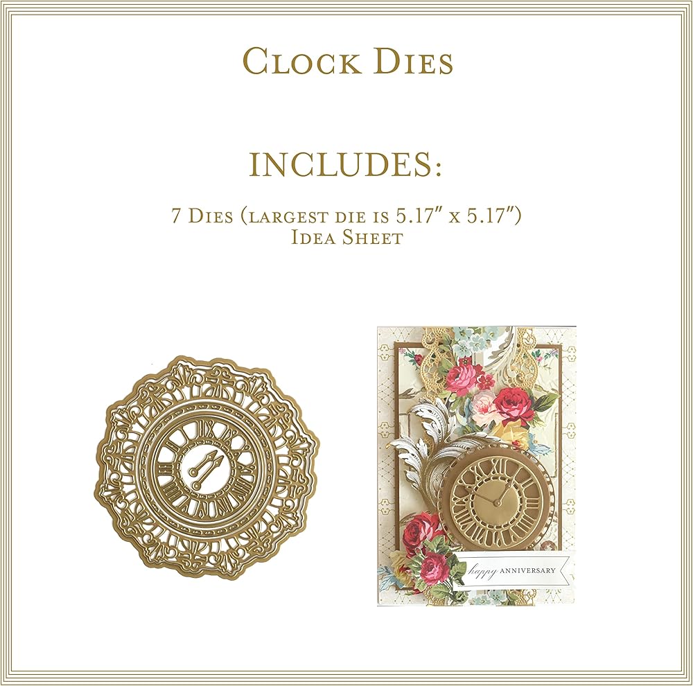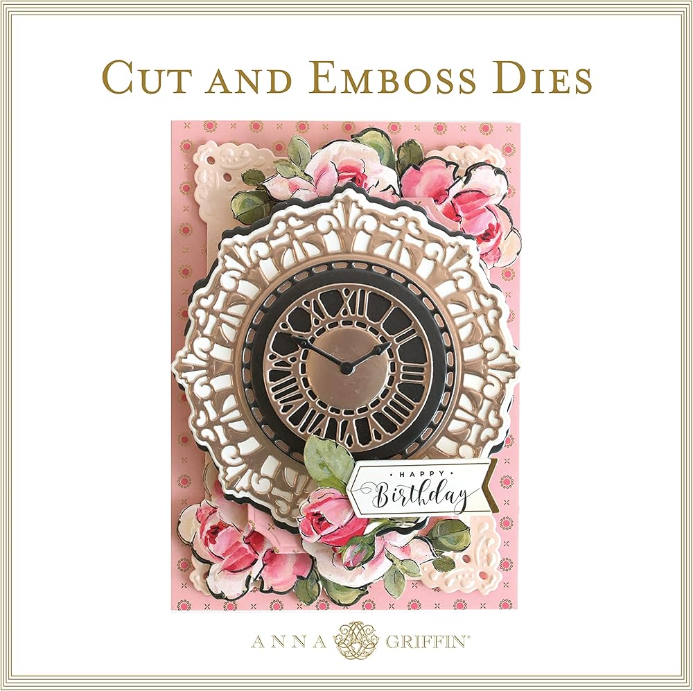 انا جريفين قوالب على مدار الساعة - قوالب معدنية لصنع البطاقات والحرف الورقية والمشاريع الورقية - قصاصات ساعة سجل القصاصات مع ورقة افكار ومجموعة قوالب من 7 قطع، أكبر قالب هو: 5.15 انش × 5.15 انش