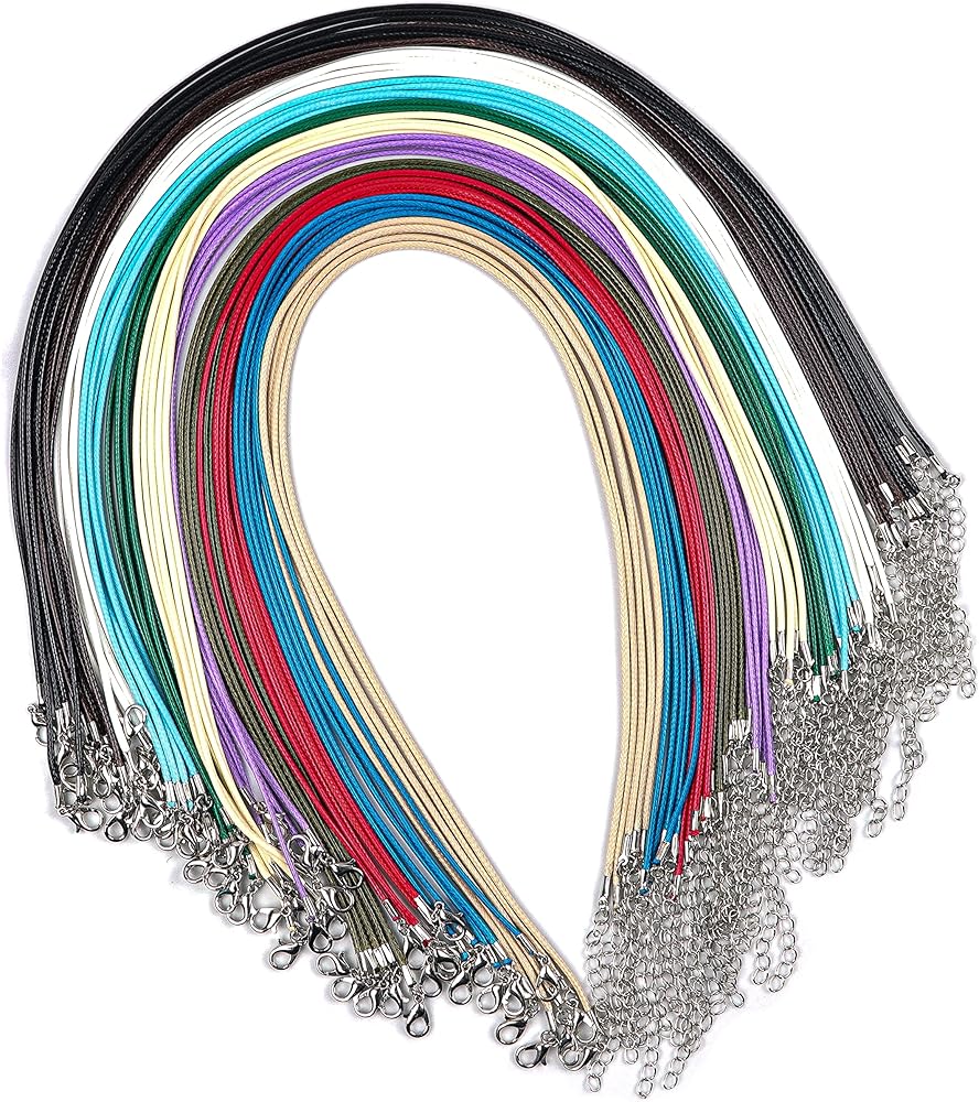 👍【جودة عالية】سلسلة القلادة هذه لصنع المجوهرات مصنوعة من القطن المشمع المتين وخفيف الوزن، وسطح أملس وناعم مع مشابك مجوهرات رقيقة. مثالية لإضافة المعلقات والسحر والخرز والأحجار وما إلى ذلك