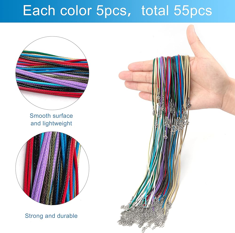 🌈【ملونة】الكمية الإجمالية للسلك المشمع هي 55 قطعة. يوجد 11 نوع من الحبال الجلدية بألوان مختلفة، 5 لكل لون. يمكن مطابقتها كما تريد والتخلص من الألوان الرتيبة في الماضي، وهي مناسبة بشكل خاص لمشاريع صنع القلائد والمجوهرات