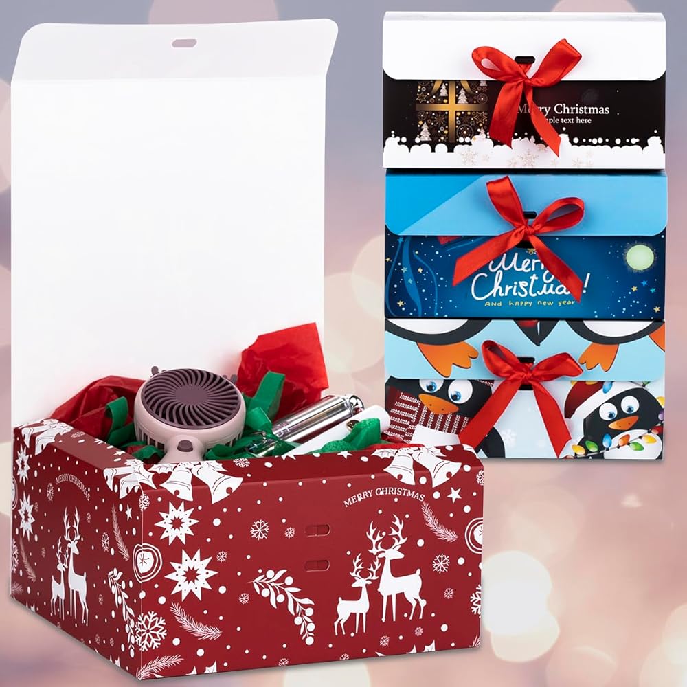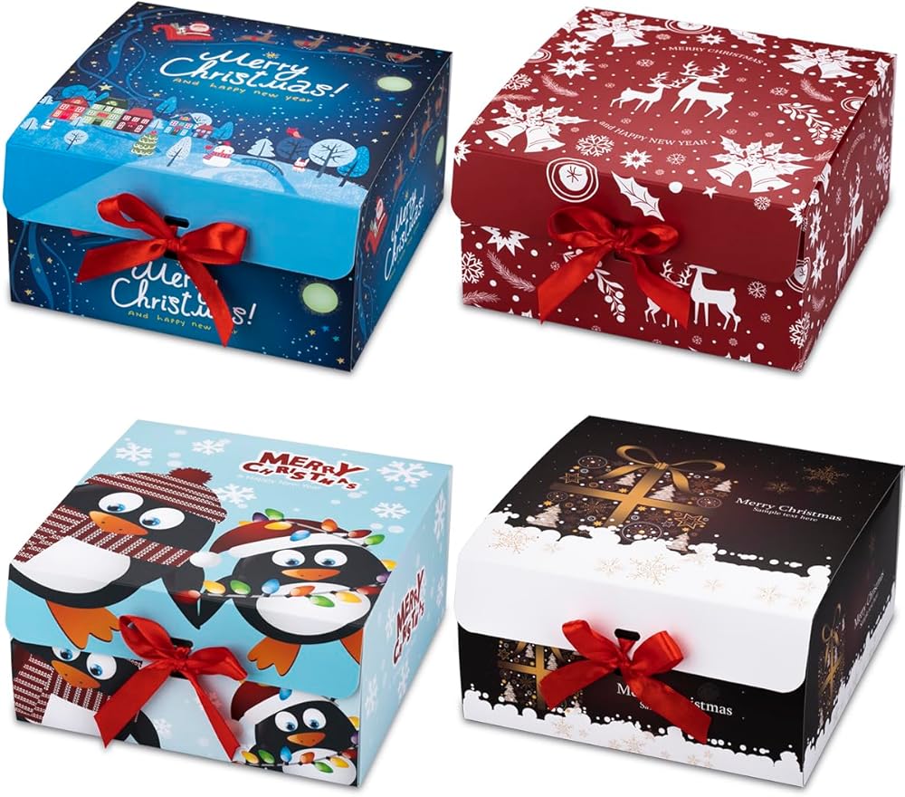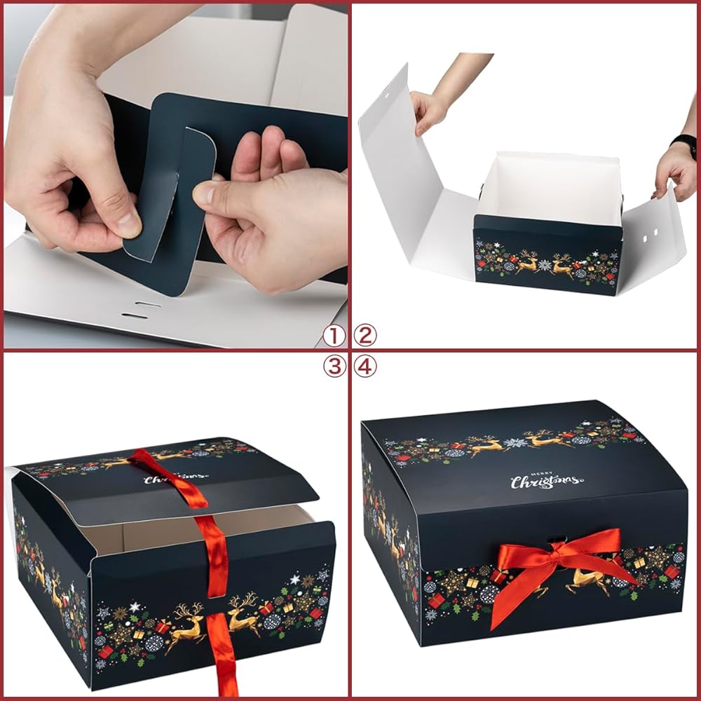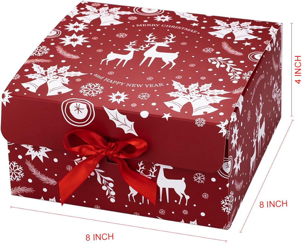 تعتبر علب الهدايا ذات نمط عيد الميلاد مع أشرطة حمراء كلاسيكية وأنيقة وعصرية، مما يجعل هديتك أكثر تميزًا.