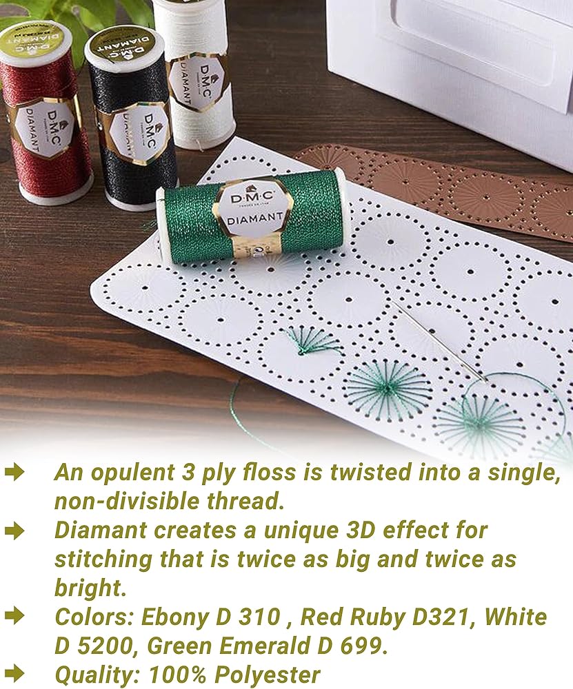 ▪️DMC Diamant is a smooth,non divisible glitter floss. It is a fine Shimmer thread .