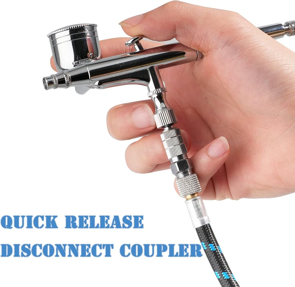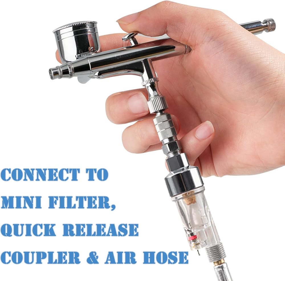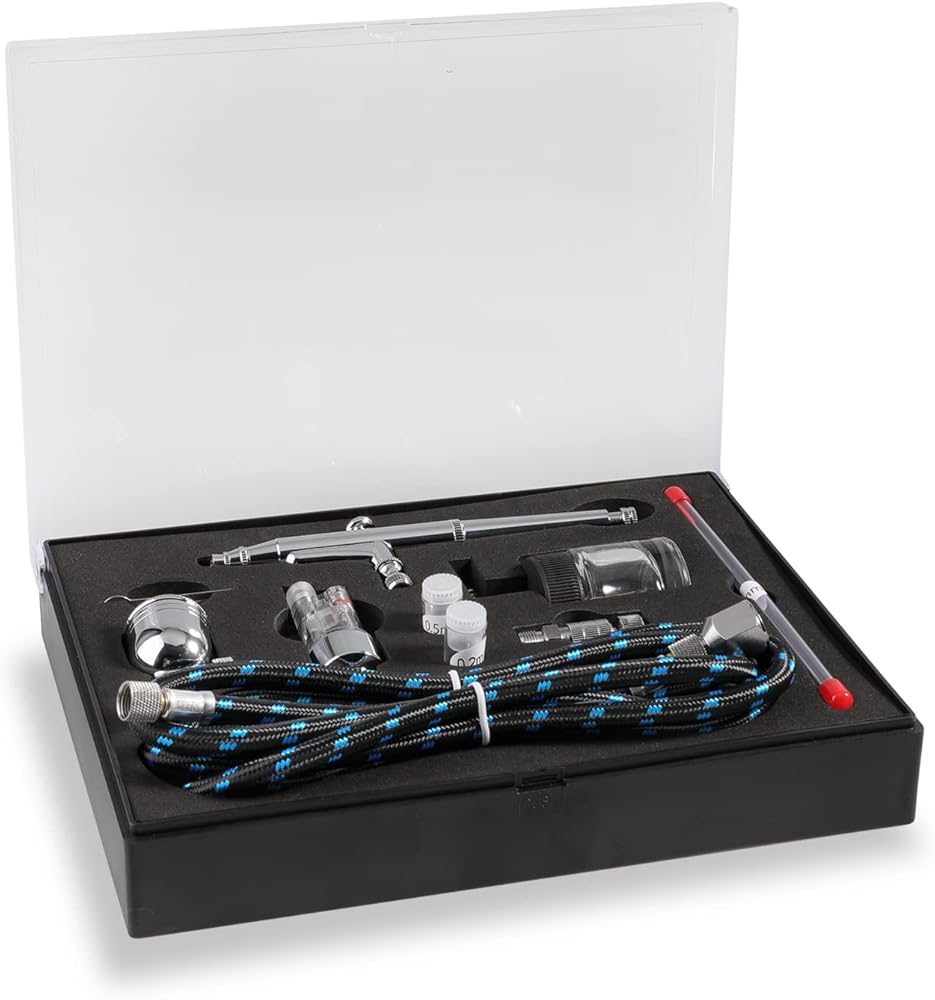 تتضمن مجموعة البخاخة قطعة واحدة من مسدس فرشاة الهواء 0.3 ملم، قطعة واحدة من غطاء الفوهة 0.2 ملم، قطعة واحدة من غطاء فوهة السائل 0.5 ملم وإبرة، قطعة واحدة من خرطوم الهواء المطاطي المضفر 1.8 متر (6 قدم)، قطعة واحدة من المحول، قطعة واحدة من فلتر الفرشاة الهوائية الصغير