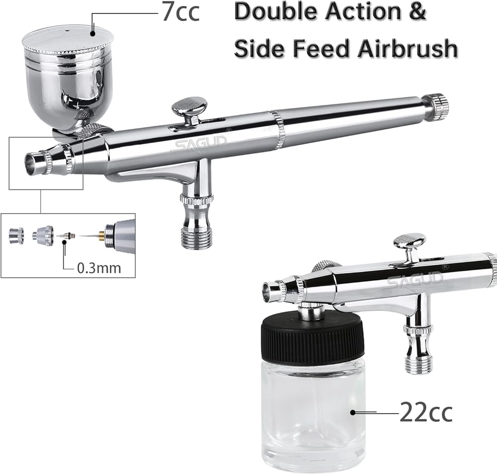 فرشاة هواء متعددة الأغراض: هذه المجموعة ذات عمل مزدوج وتغذية جانبية. إنه يعمل على استخدام الفرشاة الهوائية ومعظم أنواع وسائط رش الطلاء. رائعة للمبتدئين والطلاب والفنانين المتقدمين.
