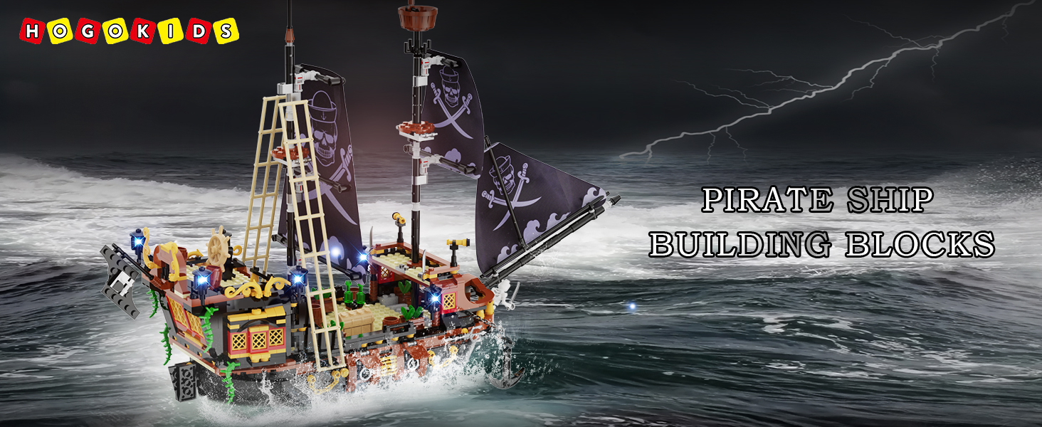 Creative toy set for pirate fans - Any fan of creative games and adventures will love this pirate ship building set. Bright colours and realistic appearance enhance the fun of building this vibrant pirate ship model. Building a pirate ship can awaken the passion of pirate lovers for sailing. It can effectively relieve your stress and regain happiness