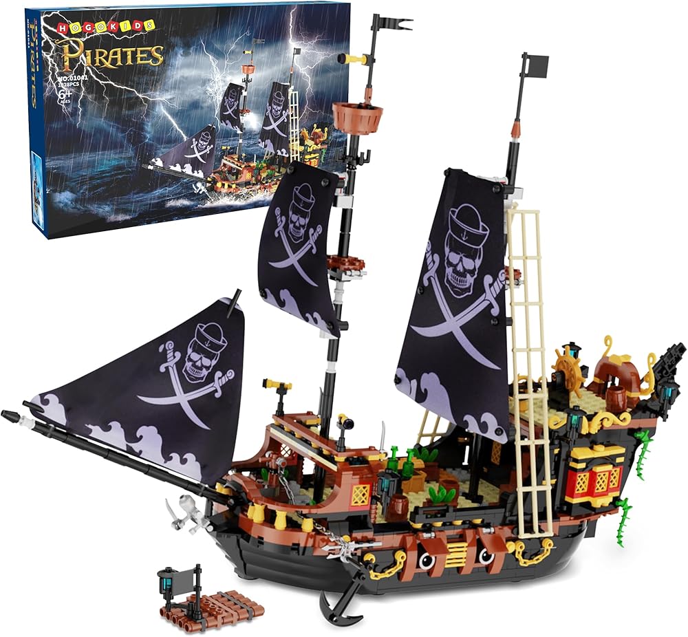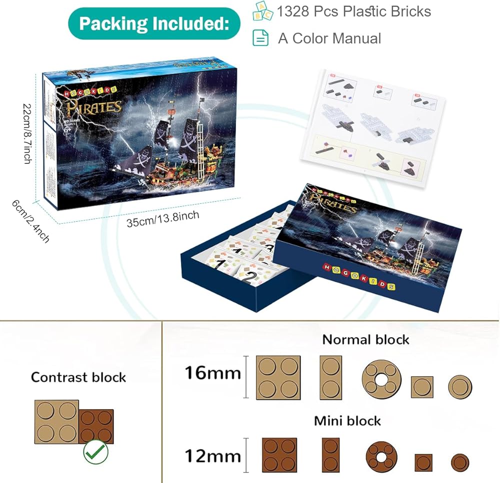 مجموعات مكعبات بناء سفينة القراصنة من HOGOKIDS - مجموعة مكعبات بناء صغيرة لسفينة القراصنة | مجموعة نماذج القوارب والسفن مجموعة بناء من القرون الوسطى | هدية القراصنة للبالغين والأطفال 6+ (1328 قطعة)
