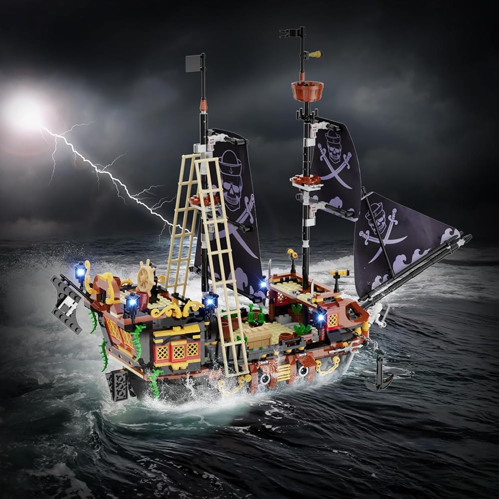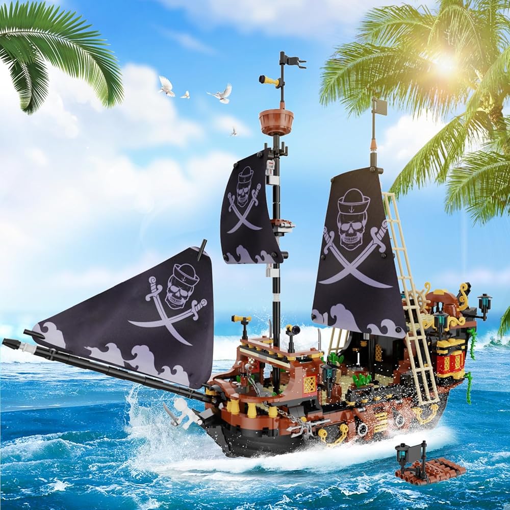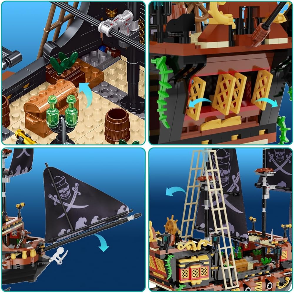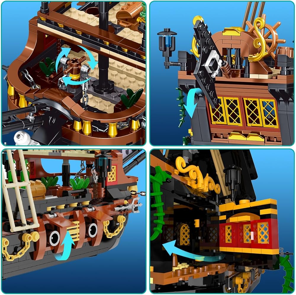 Amazing pirate ship model - This pirate ship construction toy set contains many details, including an unbreakable pirate flag, a length-adjustable anchor, a rudder that can be rotated 360 degrees, double-sided opening cabin doors, a mysterious treasure chest and an elaborate cabin setup. A wonderful pirate ship decoration for pirate fans of all ages