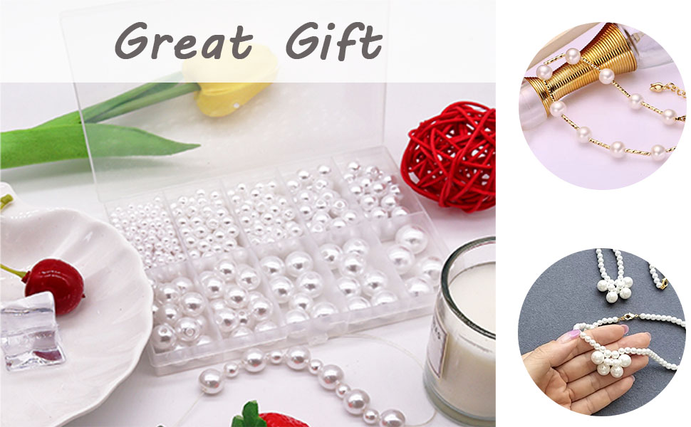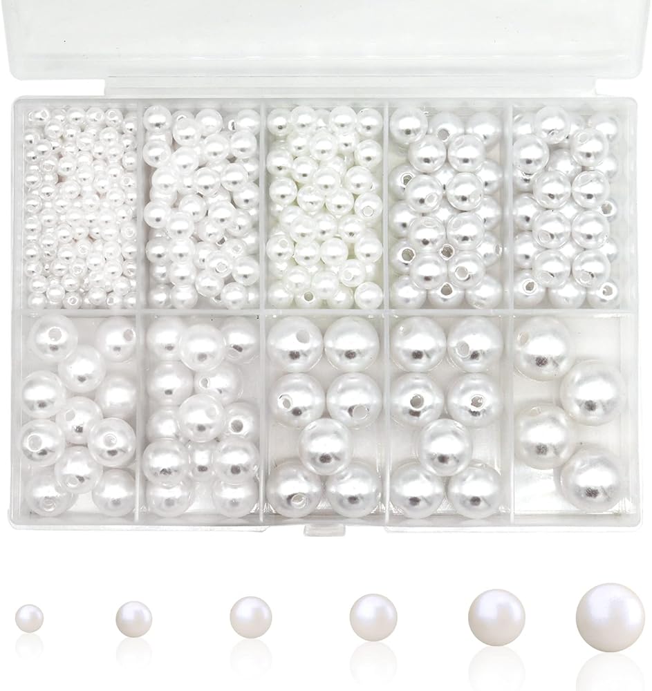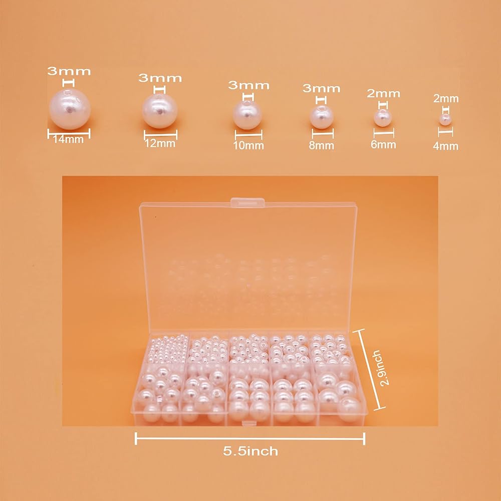 Dolleme 468PCS Pearl Beads 4mm 6mm 8mm 10mm 12mm 14mm 6 Size Round Pearl Beads Loose Bracelet Pearl Beads White Pearl Beads with Hole for DIY Craft Handmade Jewelry Making أساور القرط قلادة