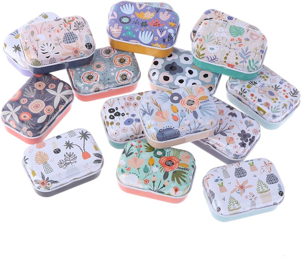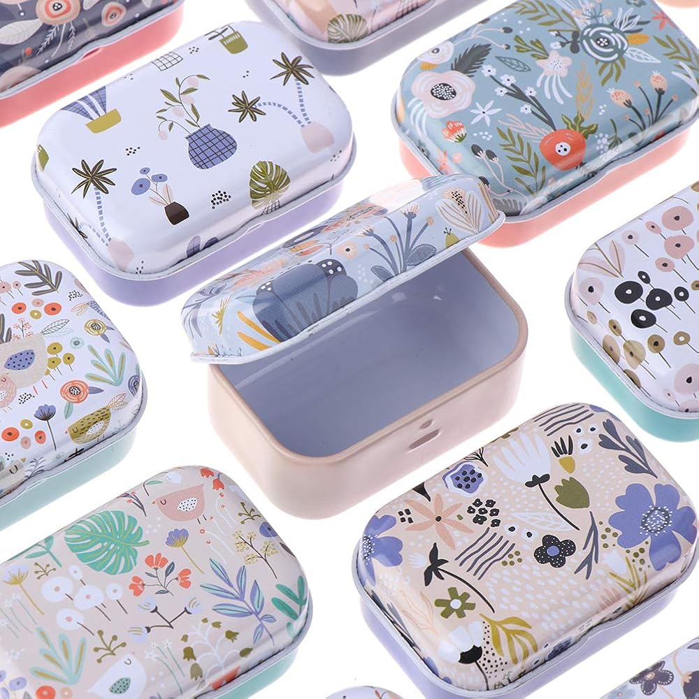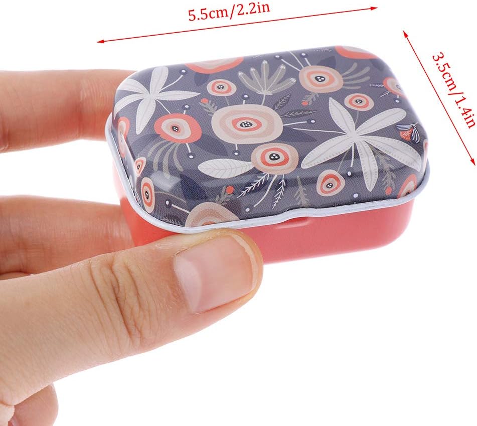 علبة صغيرة من الحديد من القصدير مستطيلة الشكل لتخزين العملات المعدنية والحلوى والزهور مع غطاء للاغراض وسدادات الاذن والحبوب والخرز الصغير والاظافر وقطع المجوهرات (نمط عشوائي) 5 قطع