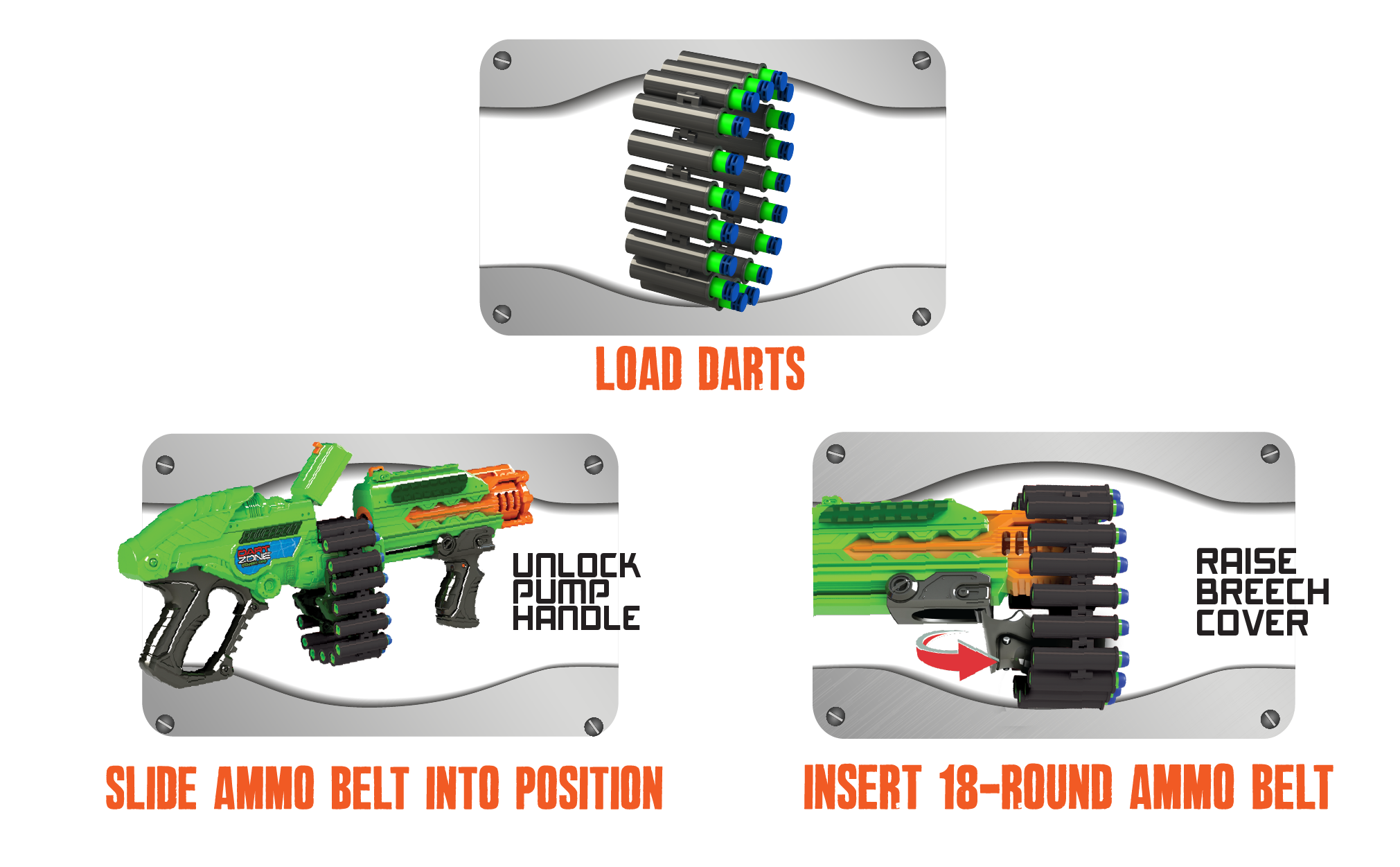 سيطر على ساحة المعركة في الفناء الخلفي باستخدام مسدس حزام باور بولت. يطلق هذا المسدس السريع الذي يعمل بمضخة 18 سهمًا خارقًا في أقل من 18 ثانية! كل سهم فائق الدقة يطير حتى 80 قدم، مما يمنح لعبتك وصولاً لا مثيل له. تأتي مجموعة قاذف حزام المضخة الكهربائية مع قاذف واحد، وحزام ذخيرة 18 دائري، و18 سهمًا فائقًا. تتوافق سهام سوبر العالمية مع مسدسات دارت زون ومعظم ألعاب قاذف العلامات التجارية الكبرى الأخرى.