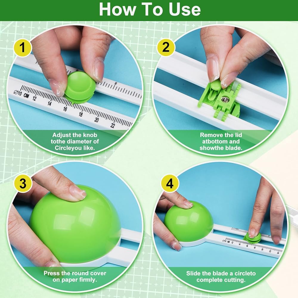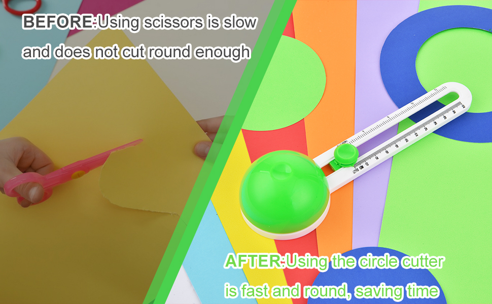 【Easy to use】 Clear scale. The adjustable paper handicraft circular cutting machine can cut circles with diameters ranging from 3.6 inches to 12.6 inches. Children can easily make handicrafts