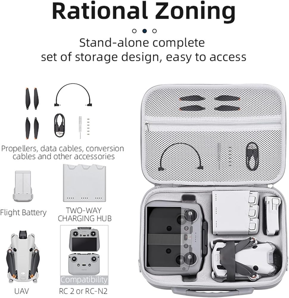 حقيبة حمل لدي جيه اي ميني 4 برو: تم تصميم حقيبة اليد هذه خصيصًا لدي جيه اي ميني 4 برو، والتي يمكن أن تكون متوافقة مع دي جيه اي ار سي 2 أو ار سي-ان 2. وفي الوقت نفسه، يمكن تخزينها: الشاحن والمروحة وكابل البيانات والكمبيوتر اللوحي وغيرها من الملحقات