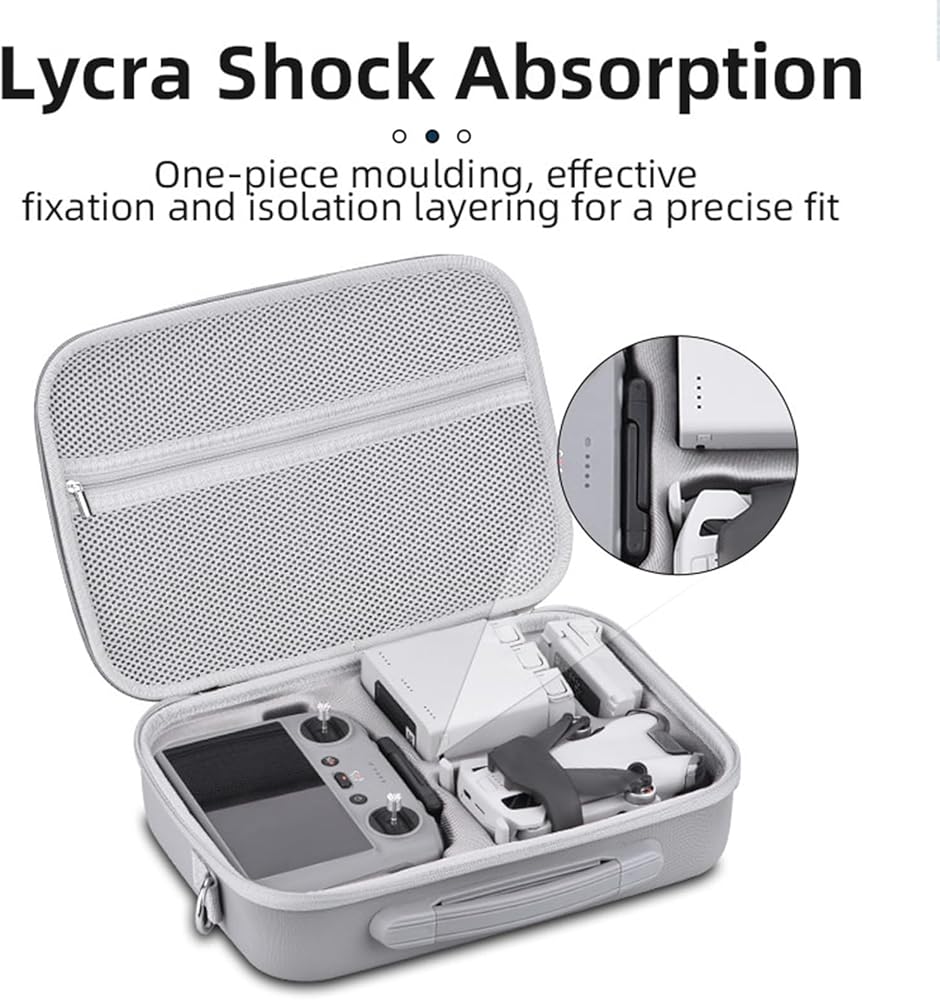 تصميم معقول للبطانة: تم تصميم كل مساحة لتناسب الطائرة بدون طيار وملحقاتها. يمكن أن يتوافق أخدود بطانة جهاز التحكم عن بعد مع دي جيه اي ار سي 2 أو ار سي-ان 2. يمكن أن يمنع قماش الليكرا الطائرات بدون طيار من الاصطدام والاحتكاك، مما يمنع الطائرات بدون طيار من الخدش.