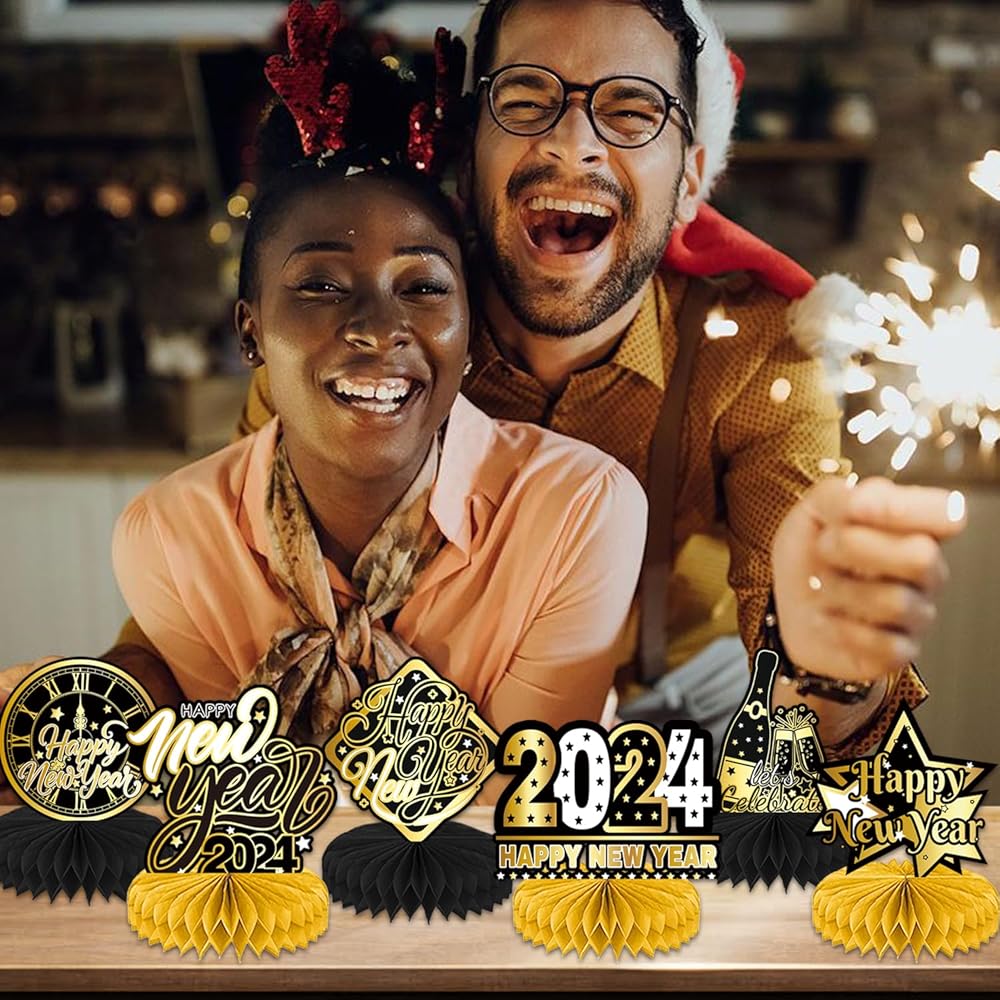 High Quality: These New Years Eve table honeycomb centerpieces digitally printed with high technology. They are beautiful, lightweight, colorfast and safe for midnight party 2024 new year's eve decorations