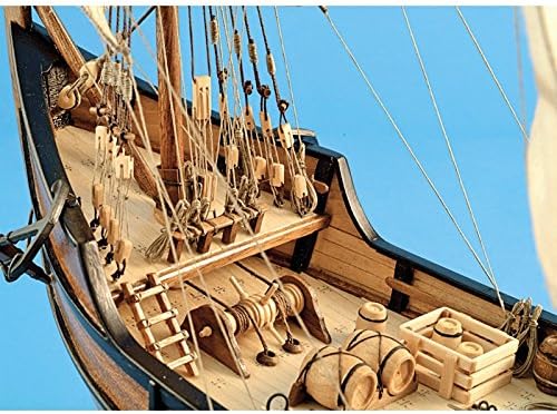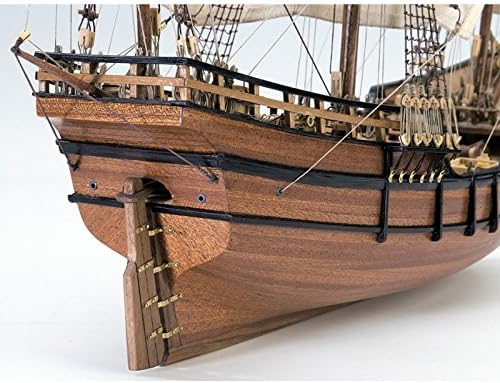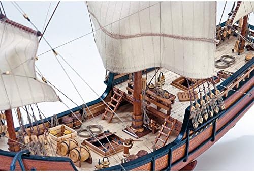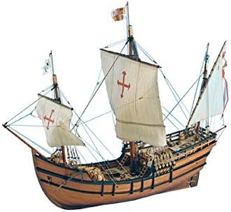 The model kit contains high-precision laser cutting plates; wood and birch veneer; numerous pieces of wood, metal and brass; high-quality brass photo engraving pieces; sails hands and ready to be placed; cotton threads; real plane of the caravel; a support to finish the model once; and everything necessary to delight the modelers.