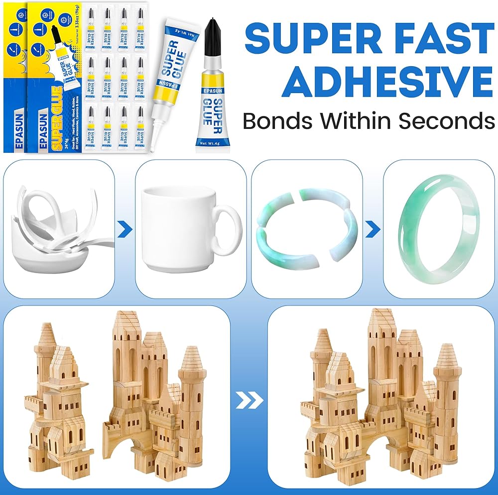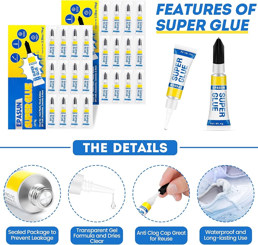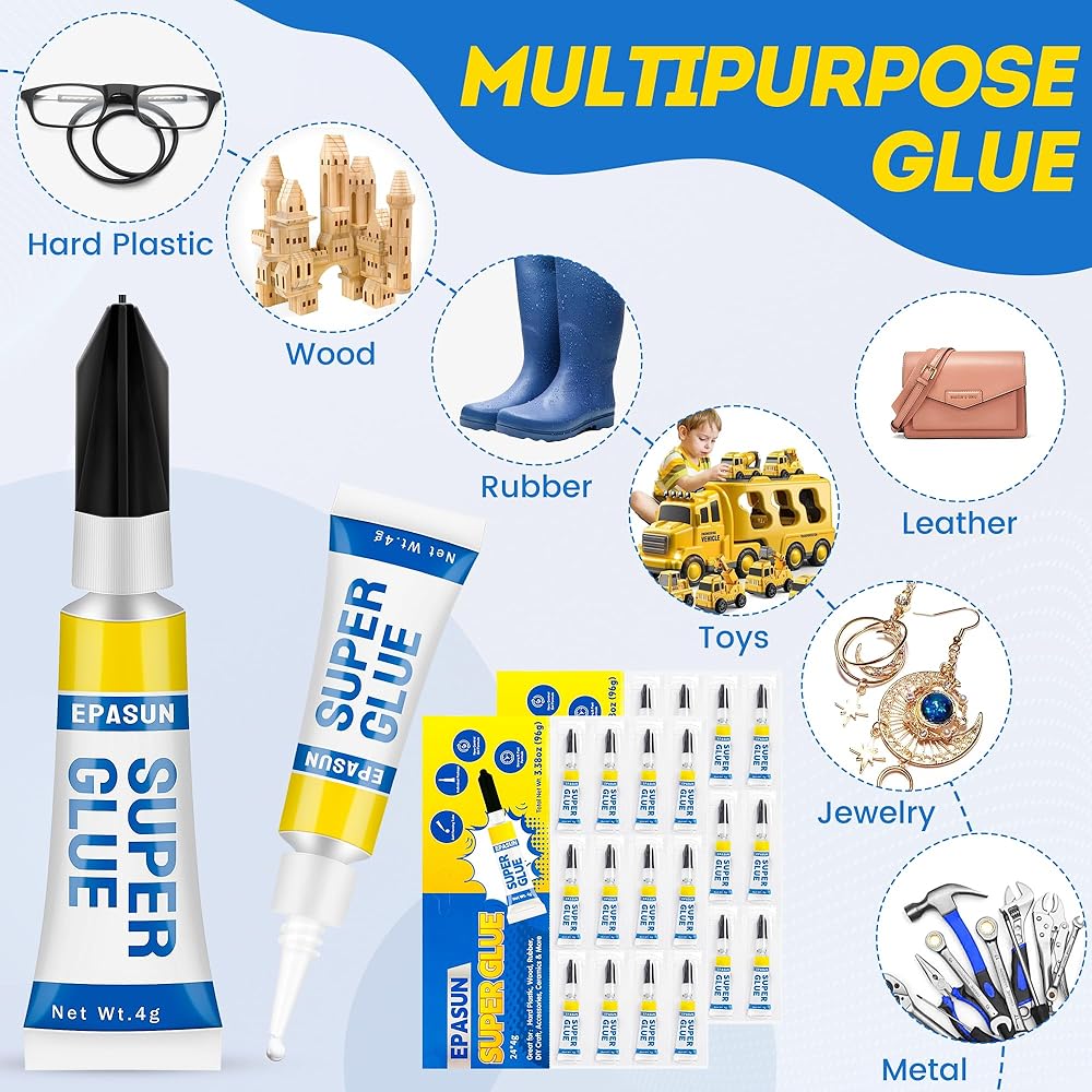 ✅غراء لجميع الأغراض: غراء السيراميك الشفاف متعدد الاستخدامات EPASUN متوافق مع مواد متعددة ومثالي لإصلاح السيراميك والمجوهرات والبلاستيك والمطاط والورق والجلود والمعادن وغيرها الكثير مع تأثيرات طويلة الأمد. لا يُنصح باستخدامه مع بلاستيك البولي إيثيلين.