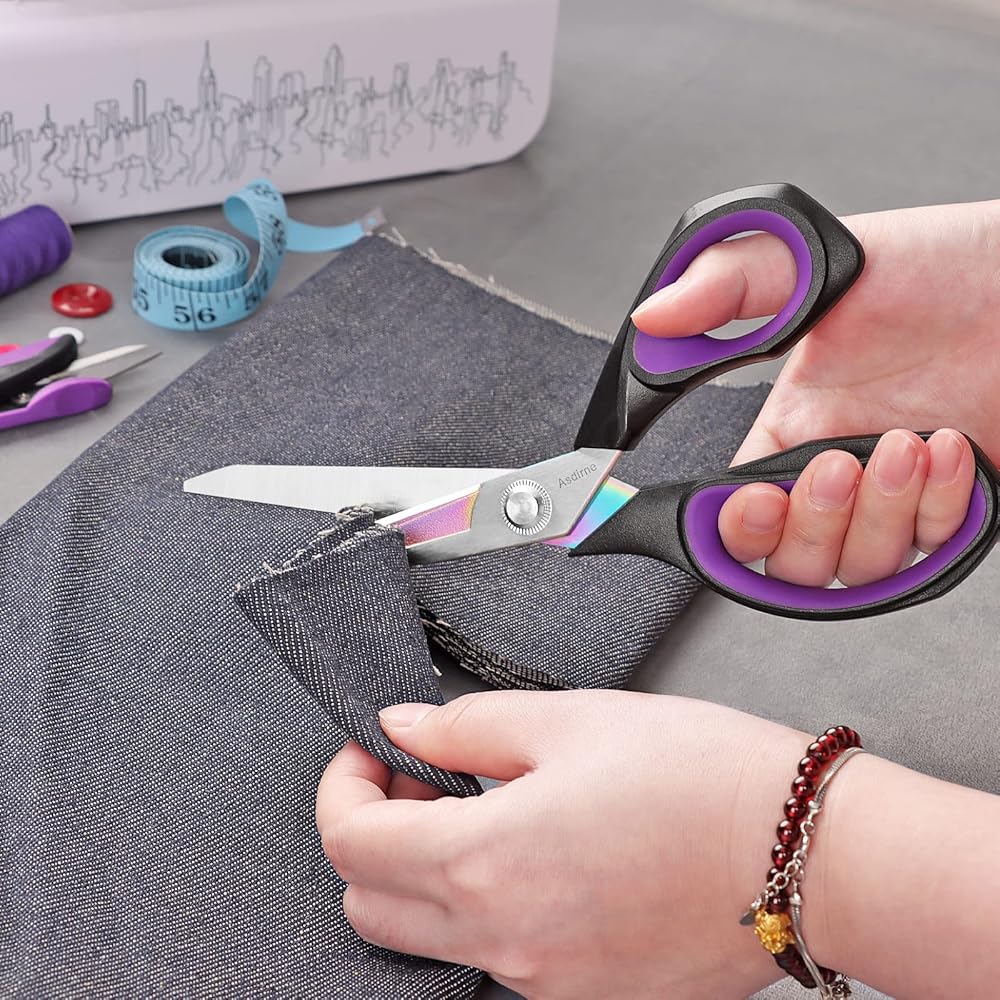 مجموعة مقصات قماشية احترافية من أسديرن، مقص خياطة مطلي بالتيتانيوم، مقص خياطة بشفرة حادة للغاية، مقبض مطاطي مريح، رائع للحرف اليدوية، الخياطة والاستخدام اليومي، 23.9 سم/ 12.7 سم، مجموعة من قطعتين