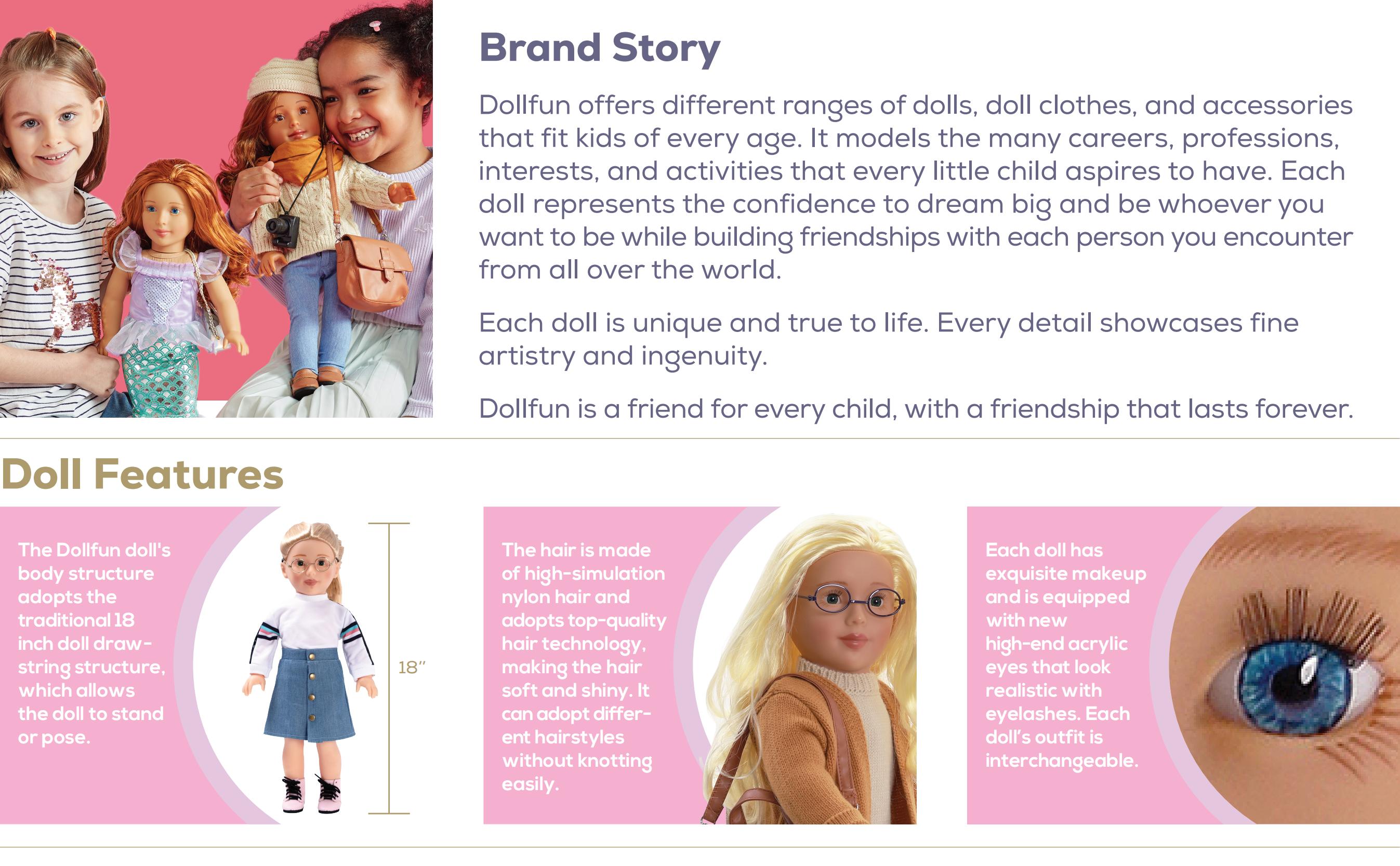 • تتمتع كل دمية بمكياج رائع ومجهزة بعيون أكريليك جديدة راقية تبدو واقعية مع الرموش. زي كل دمية قابل للتبديل.