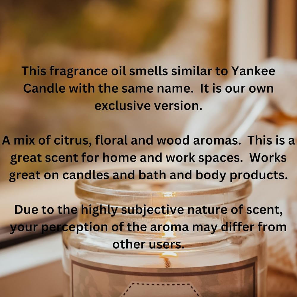 • رائحة مشابهة لشموع يانكي التي تحمل نفس الاسم. مزيج من روائح الحمضيات والزهور والخشب. هناك أيضًا رائحة ثانوية من أزهار البرتقال والحمضيات الباردة والسنط والخشب الطافي. إنها رائحة رائعة للمنزل. بسبب الطبيعة الذاتية للغاية للرائحة، قد يختلف إدراكك للرائحة عن المستخدمين الآخرين.