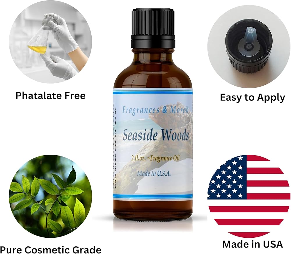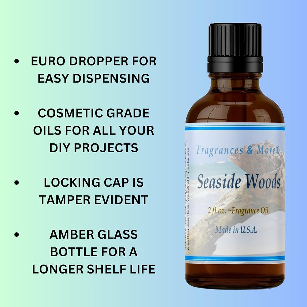 زيت عطري من سيسايد وودز، رائحة لصنع الصابون والشموع، يستخدم مع موزعات الهواء، زجاجة كهرمانية بسعة 2 اونصة مع قطارة اورو لسهولة التوزيع، وليس زيتًا عطريًا.