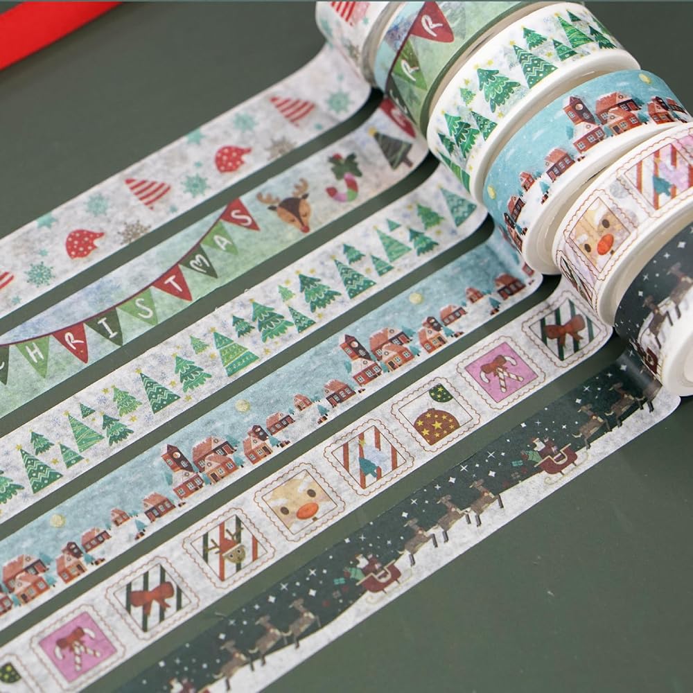 يتميز شريط الواشي الخاص بنا الذي يحمل طابع عيد الميلاد بعناصر عيد الميلاد الأكثر شهرة ومحبوبة. مع سانتا كلوز، ورجل الثلج، وندفات الثلج، وأشجار الكريسماس، والقفازات، والغزلان، والأنماط المخططة المبهجة، يوفر لك هذا الشريط الحرية الإبداعية في صناعة ديكورات العطلات الساحرة. إنه خيار مثالي لحرف عيد الميلاد للأطفال، مما يسمح لخيالك بالانطلاق خلال هذا الموسم السحري.