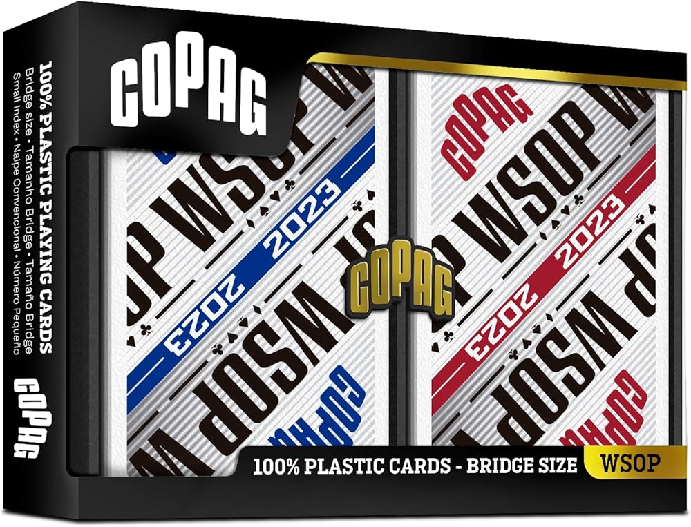 ♥ التاريخ: كانت شركة Copag رائدة في سوق بطاقات اللعب لأكثر من 100 عام. نشأ تراثنا في البرازيل وانتشر عبر أمريكا الجنوبية. تم تقديم Copag مؤخرًا إلى الولايات المتحدة في أوائل العقد الأول من القرن الحادي والعشرين. تعتبر علاقتنا مع بطولة العالم للبوكر WSOP بمثابة مثال للجودة لعلامتنا التجارية.
