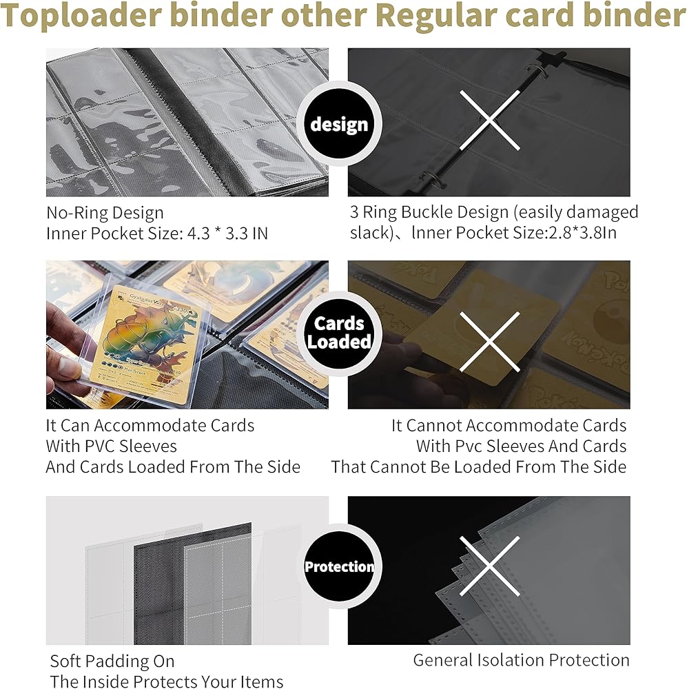 Outstanding Structure and Superior Protection: The card binder uses a fixed padding design for every page to prevent warping and squeezing, with a no-ring design, so you don't have to worry about ring damage on your collection.