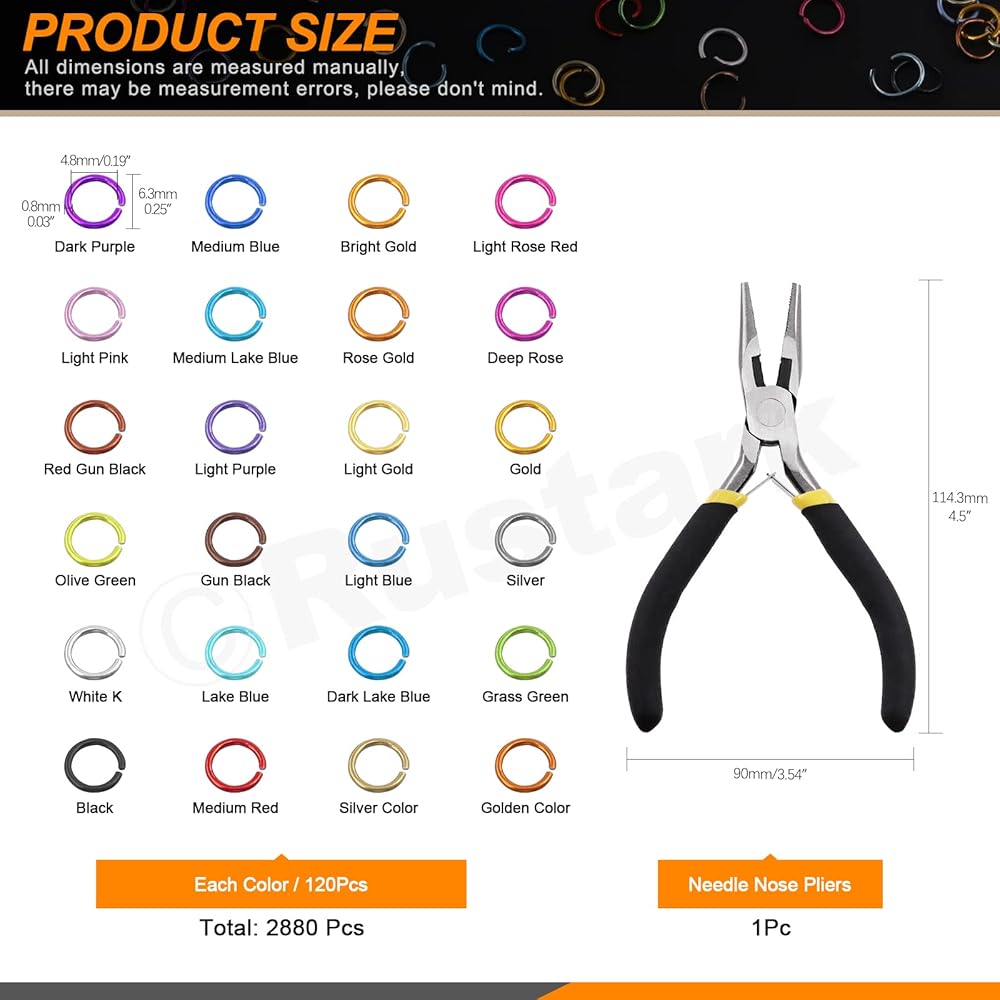 ★روستارك 2881 قطعة 24 لونًا 5 ملم مجموعة متنوعة من حلقات الوصل المفتوحة مع كماشة مجوهرات وحلقات وصل ملونة من الألومنيوم للأقراط والأساور والقلائد والقلائد وصنع المجوهرات بنفسك