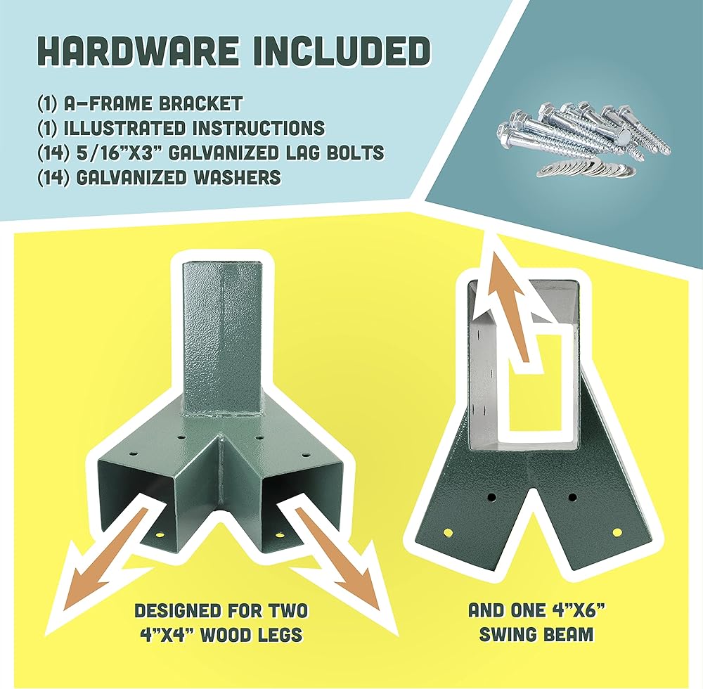 ملحقات مجموعة التأرجيح: دعامة مجموعة التأرجح على شكل A مصممة لجعل من السهل بناء مجموعة أرجوحة خشبية على شكل إطار، والقضاء على العمل الإضافي وإضافة المزيد من المرح.
