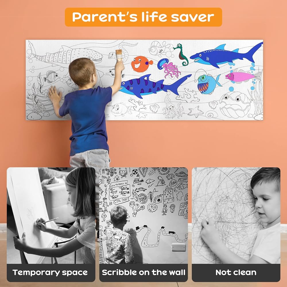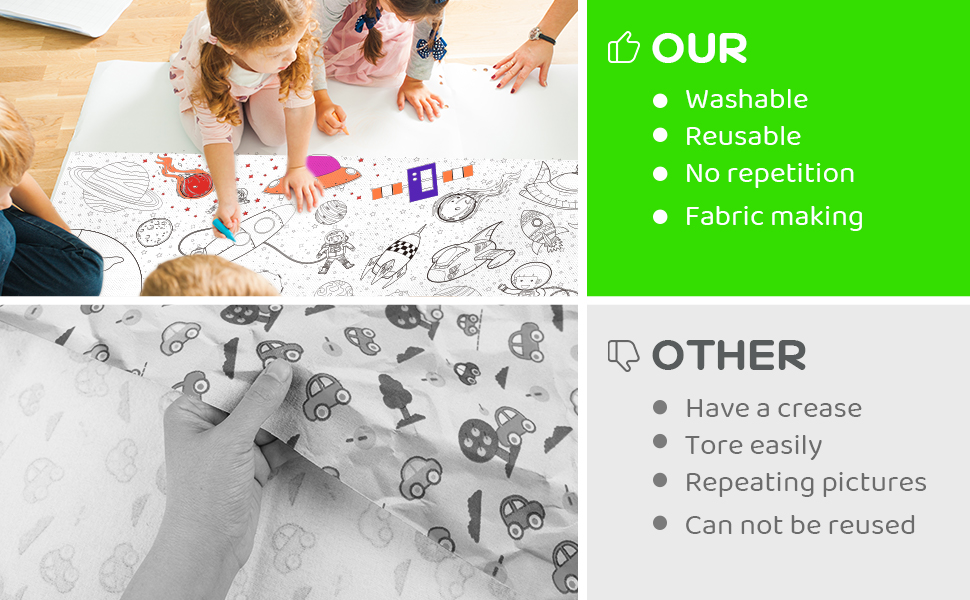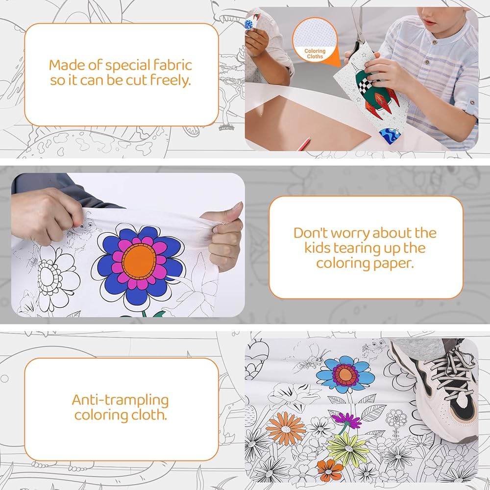【خامة عالية الجودة】 مصنوعة من قماش عالي الجودة، لا مزيد من القلق بشأن تمزيق طفلك والدوس عليه لتحسين تجربة الرسم لدى طفلك. كما يوفر السطح الناعم والأملس مصدرًا ممتازًا للتصميم والأعمال الفنية.