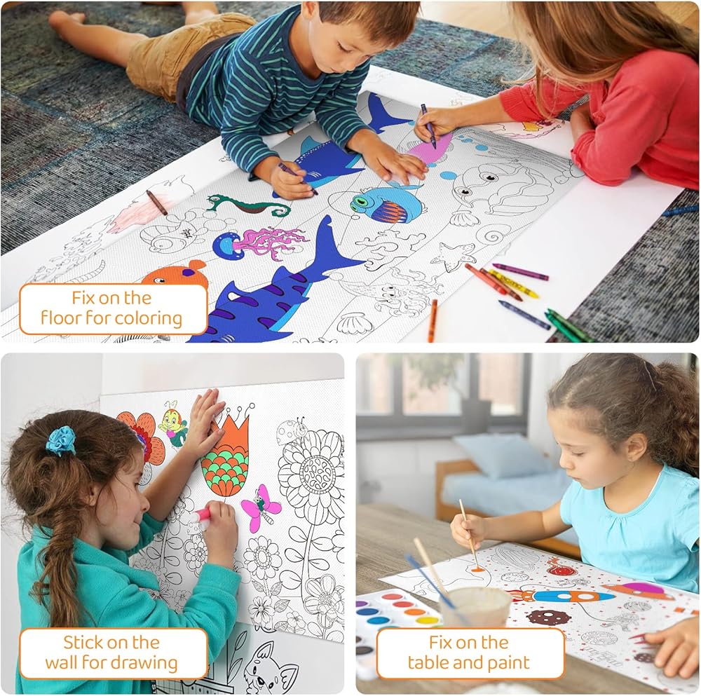 【استخدام واسع】 يمكن للأطفال وضع لفافة ورق التلوين هذه على الأرضيات والأثاث والمكاتب والحوامل وفي أي مكان يريدون إبداعه. يجعل المنزل نظيفًا للغاية بعد أن يسعد الأطفال بالرسم.