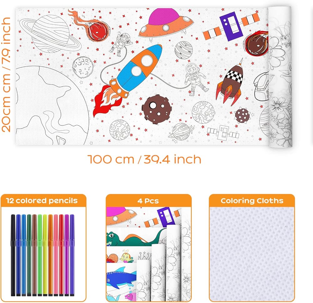 【تلوين مستمر】تتميز هذه الأوراق الأربع من بكرات الرسم مقاس 47.2 × 15.7 بوصة للأطفال بموضوعات مختلفة وهي مناسبة لجميع مستلزمات التلوين الفنية تقريبًا. مثل أقلام الرصاص الملونة والألوان المحايدة وطلاء الغواش. غير سامة وغير ذات رائحة وآمنة للأطفال من مختلف الأعمار.