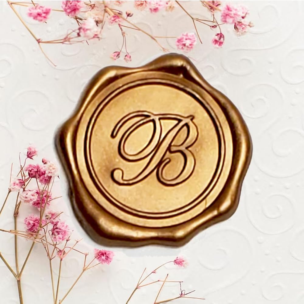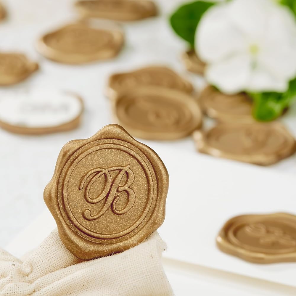 ملصقات ختم الشمع اللاصق 25 قطعة مصنوعة مسبقًا من الأحرف الأولى من الشمع الذهبي الختم الحقيقي (الأولي ب)