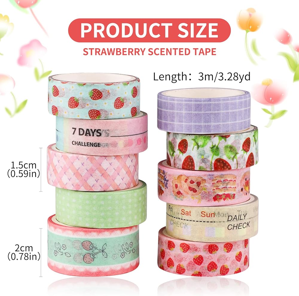 【شريط زخرفي معطر】يمكن لشريط سجل القصاصات الورقي هذا الذي يحمل طابع الفراولة أن يشم رائحة الفراولة الغنية بمجرد فتحه، وهو أمر منعش جدًا. عند استخدامه في سجلات القصاصات أو ألبومات الصور، فإنه سيمنحهم أيضًا نكهة الفراولة.