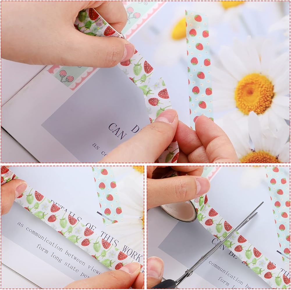 سيكون لديك أنماط وألوان متعددة من الأشرطة التي تحمل طابع الفراولة، وهي جديدة جدًا وتجلب لك أجواء الصيف. يمكنك أيضًا قصها بالشكل الذي تحتاجه ولصقها في أي مكان تريده، استخدم إبداعك لإثراء سجل القصاصات وألبومات الصور والمذكرات.