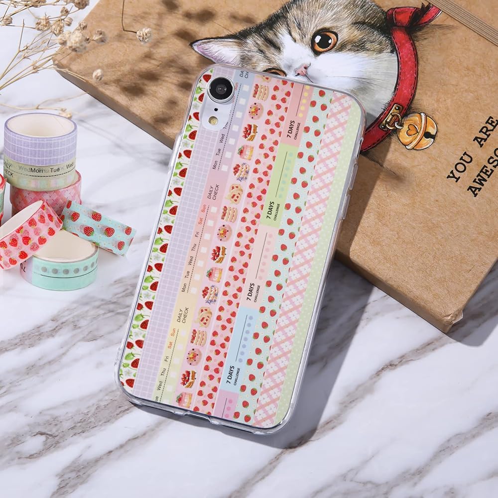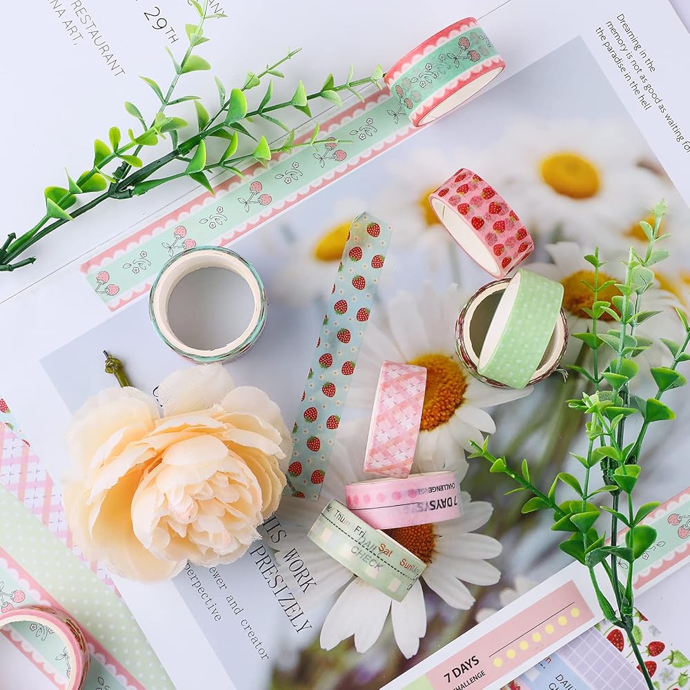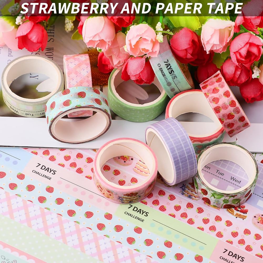 شريط واشي، شريط لاصق واشي بنمط الفراولة، شريط حرفي تزييني للمذكرات، مسك الدفاتر، الهدايا، DIY، تزيين الحائط