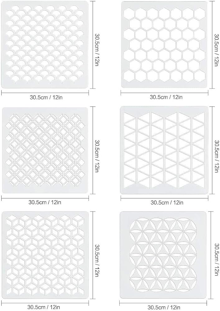 * 6 أنماط تصميم هندسي مختلفة مع قرص العسل / السداسي، المثلثات، ميزان السمك، استنسل ساشيكو، إلخ.