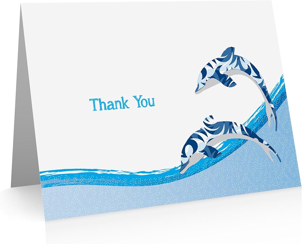 بطاقات شكر دولفين (24 بطاقة قابلة للطي ومغلفات) بطاقات دولفين