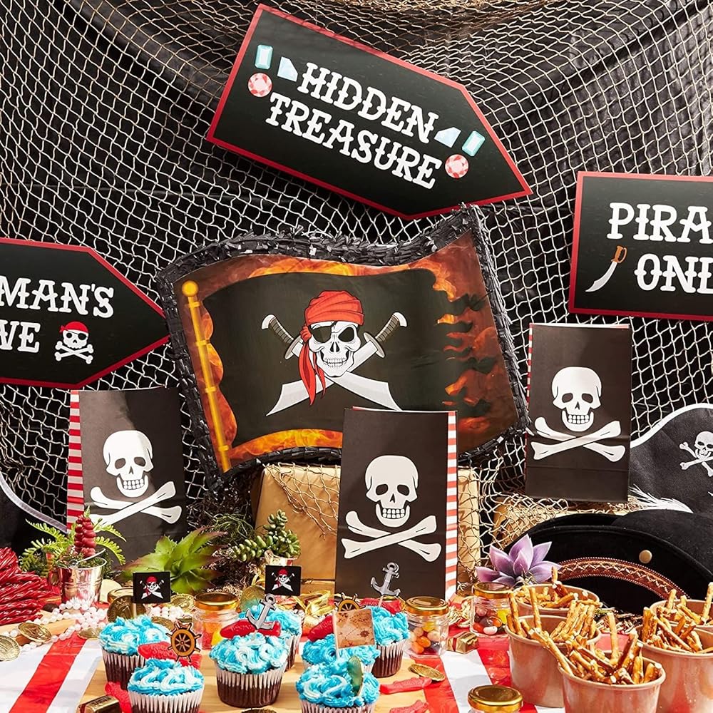 لوازم حفلات القراصنة: علم القرصان الاحتفالي هذا سيثير إعجاب ضيوفك بموضوع احتفالي ولعبة حفلة ممتعة في حفلة عيد ميلاد طفل قادم، أو سينكو دي مايو أو حدث مدرسي