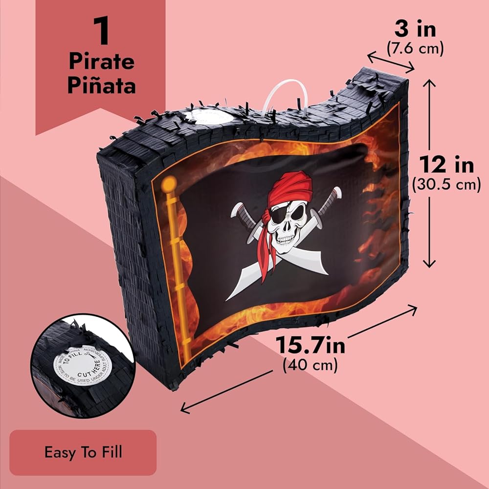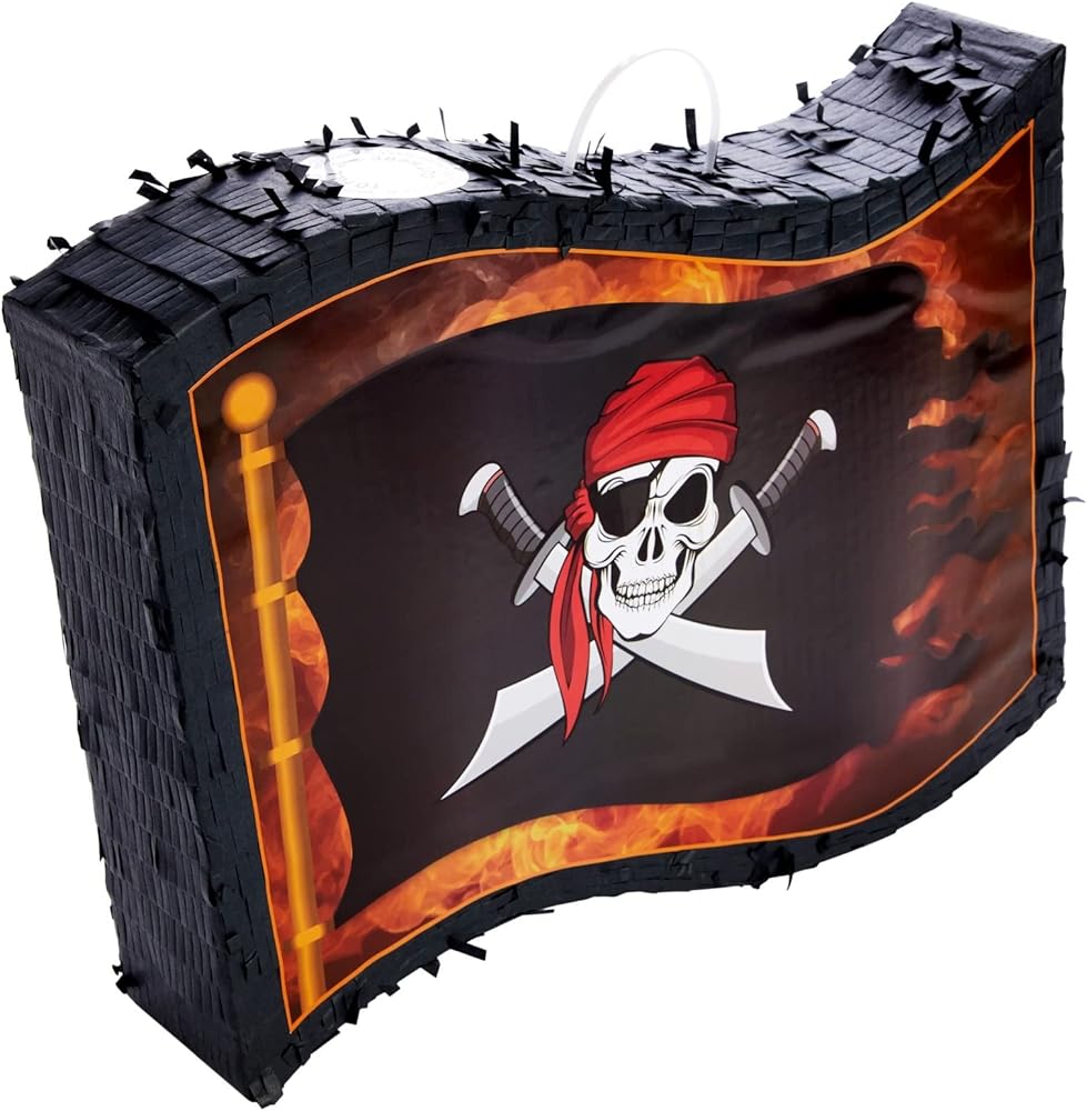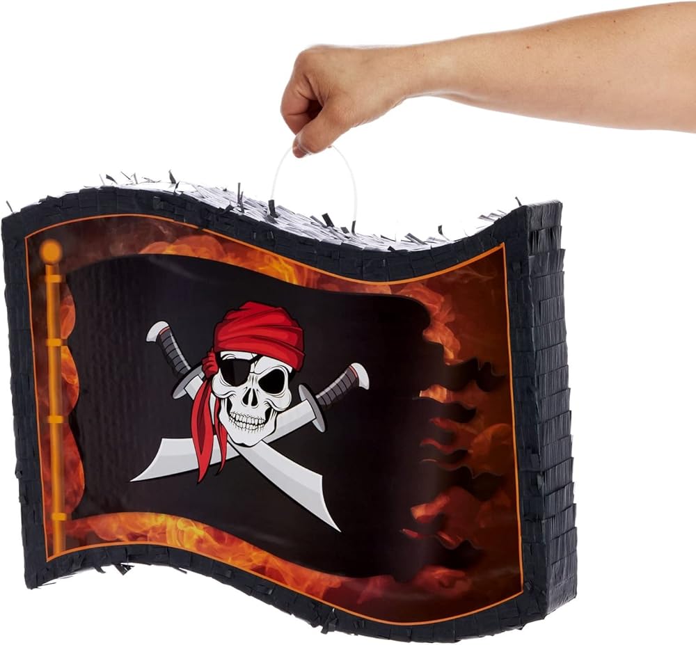 أضف جو حفلة القراصنة مع علم القرصان الممتع هذا، سيستمتع الأطفال والكبار من جميع الأعمار بإطلالتهم عند كسرها مفتوحة لبعض حشوات بيناتا اللذيذة والممتعة! امزج البينياتا بعصا أو قضيب لإطلاق الحلويات والأشياء التي يتم وضعها في الداخل ليستمتع ضيوفك في حفلة عيد ميلاد الأطفال القادمة أو النشاط المدرسي.