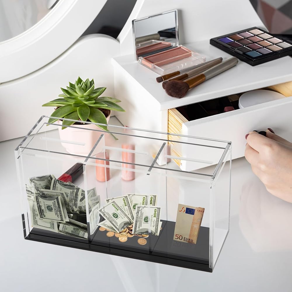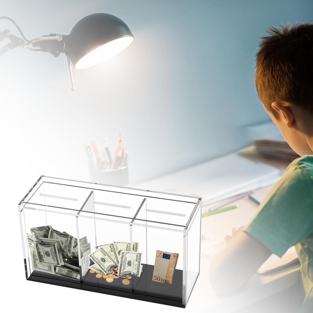 مادة شفافة: مصنوعة من الأكريليك الشفاف عالي الجودة، مما يسمح للمستخدمين برؤية مدخراتهم تنمو بسهولة، مما يوفر التحفيز والتشجيع.