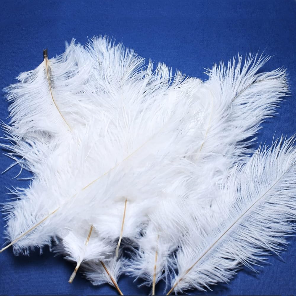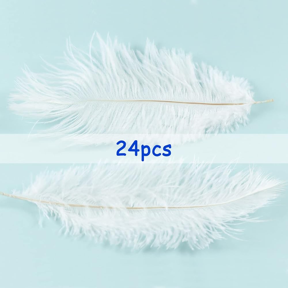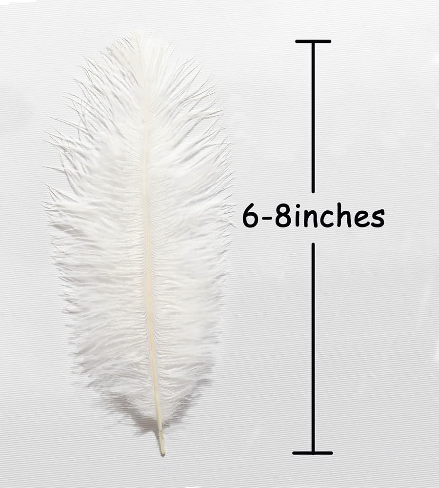 زينة ريش نعام ابيض طبيعي من ماردي جراس 6-8 انش لقطع مركزية لحفلات الزفاف وترتيب الزهور وديكور المنزل وديكورات غاتسبي (24 قطعة)