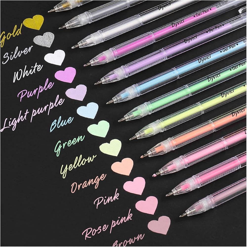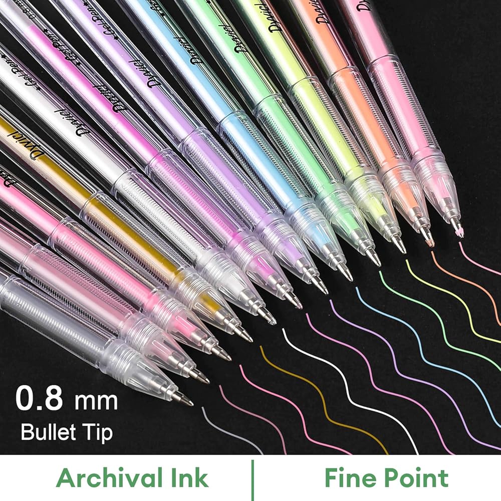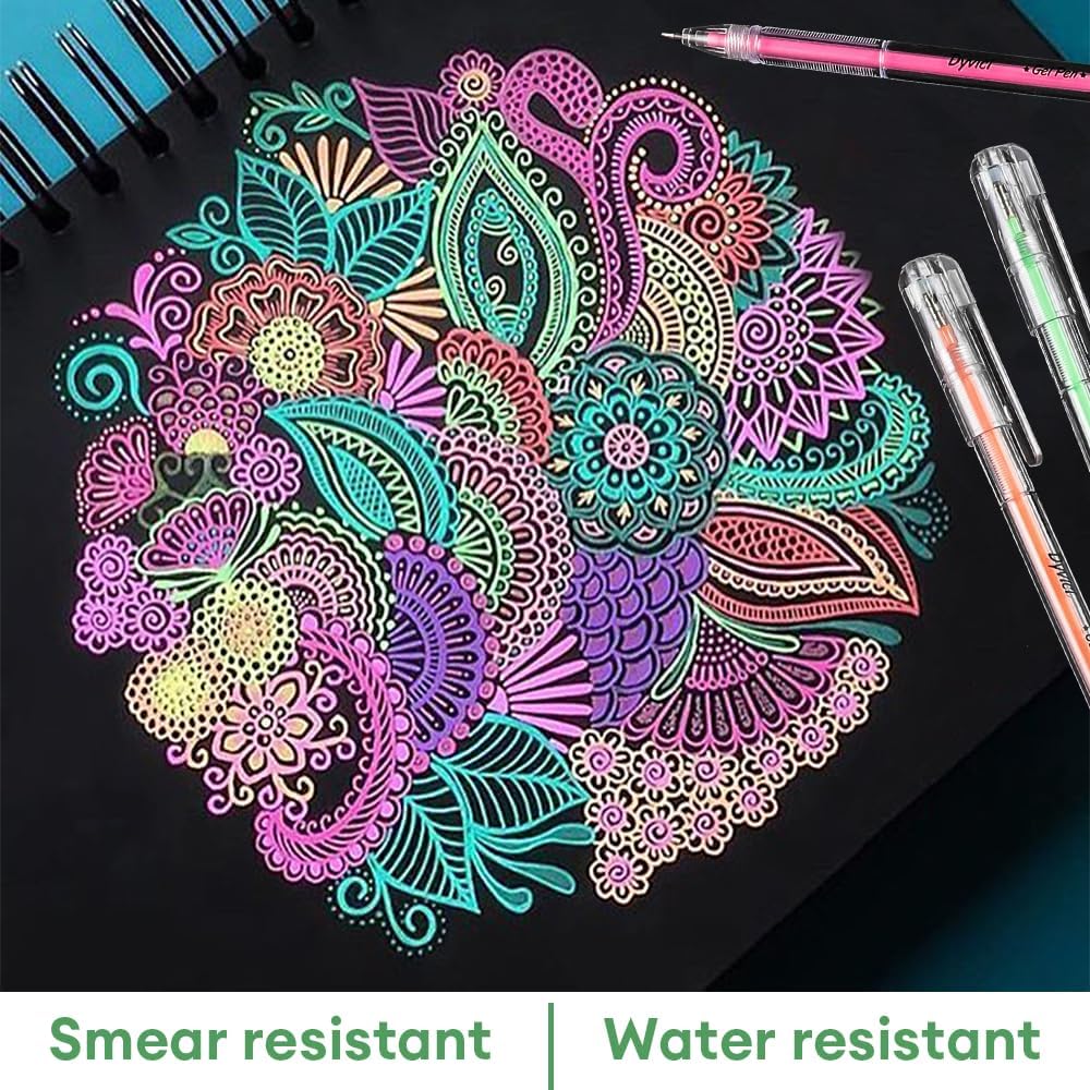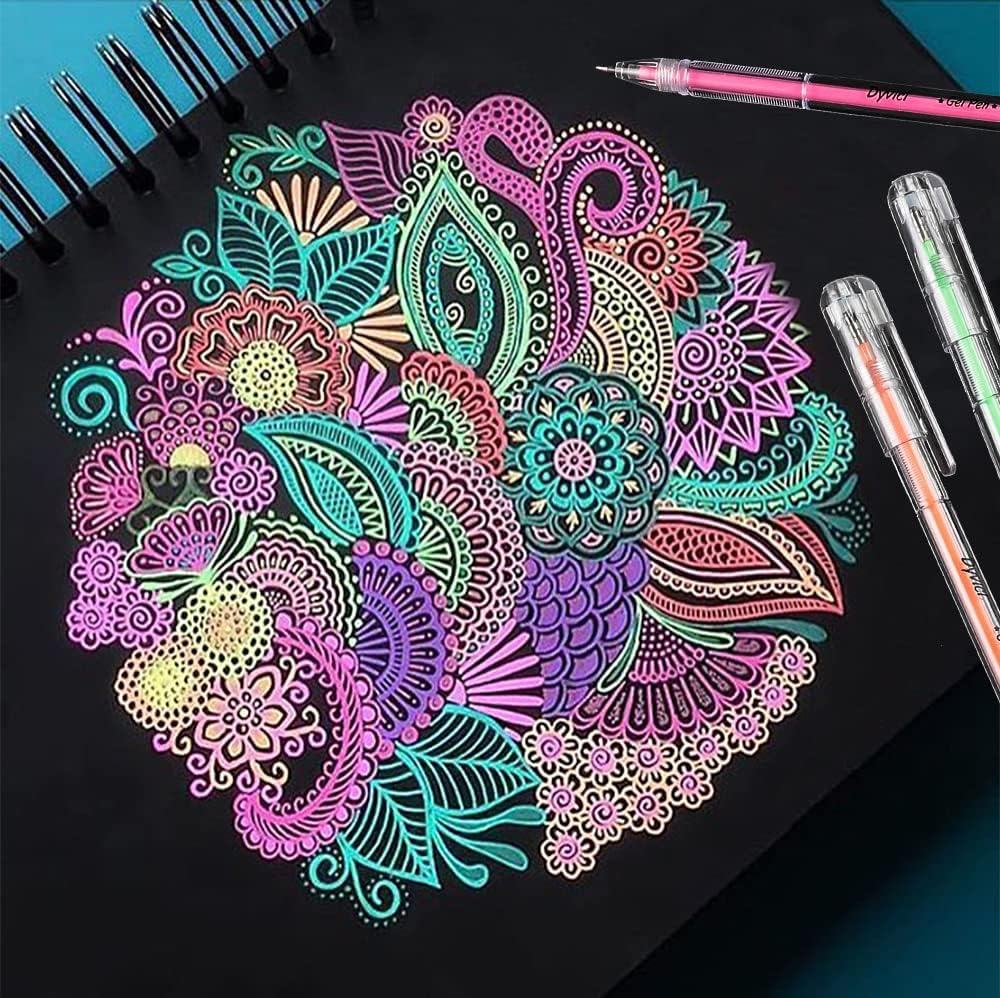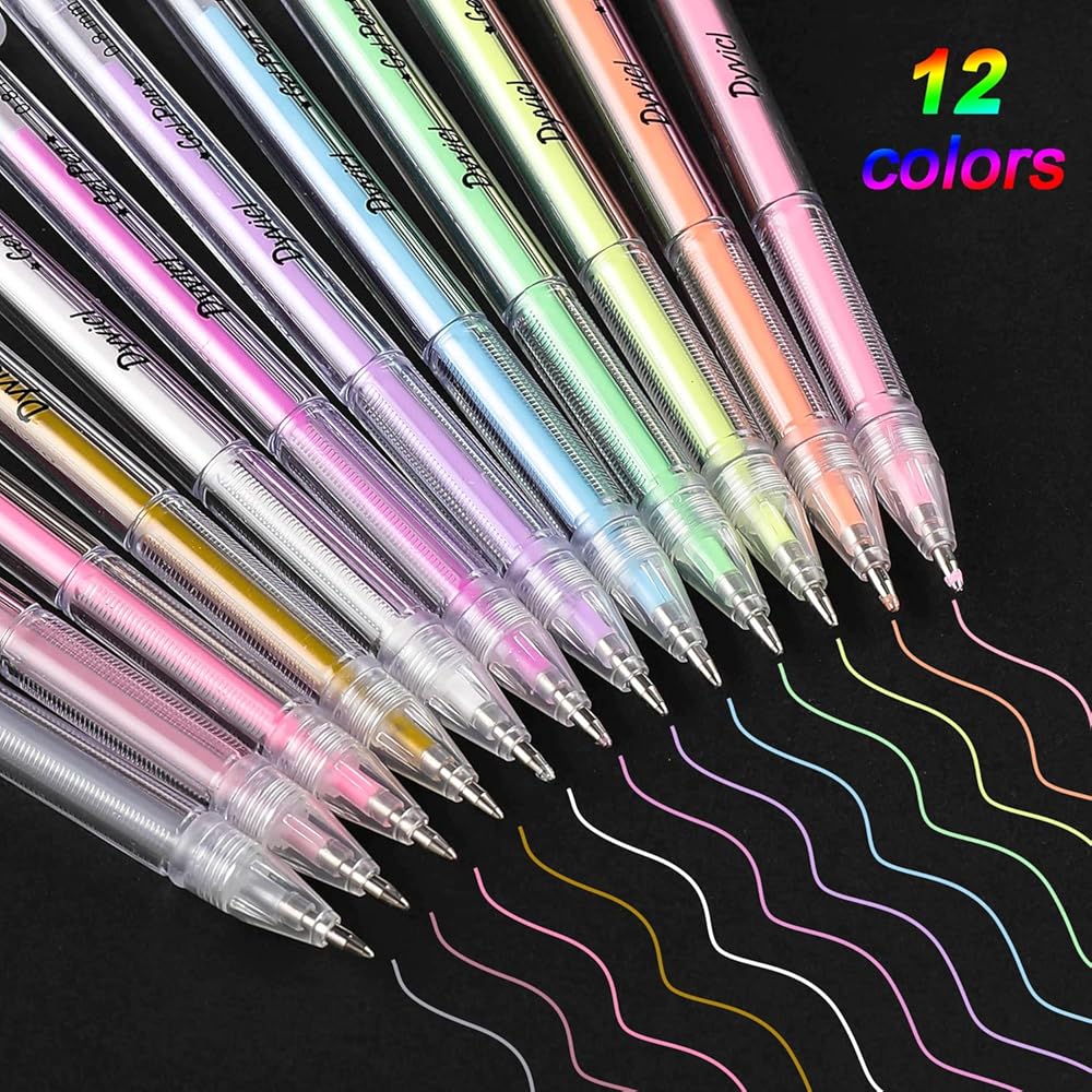 أقلام تلوين تسليط الضوء من Dyvicl، أقلام حبر هلامية ذات نقاط دقيقة مقاس 0.8 مم لرسم الورق الأسود، والرسم، والتوضيح، وتلوين البالغين، واليوميات، مجموعة من 12 قطعة